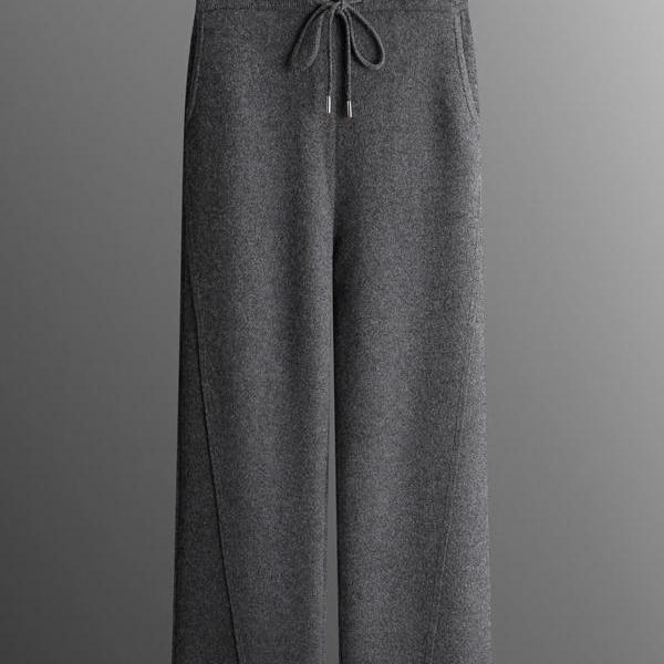 同じ秋冬の新型の厚い曲げ刀の広い足のズボンの男性のカシミヤの衛のズボンはポケットを持って腰のウールのメリヤスの運送を緩めます。