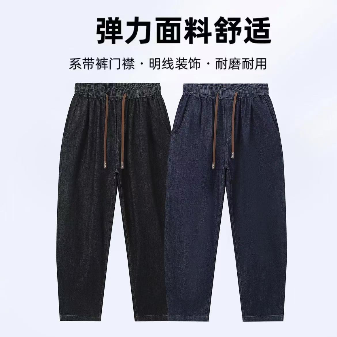 同じタイプの【太った兄の福祉】大きいサイズの秋の弾力性の水洗い原色のデニムの明線の耐摩耗性の大きい股のゆったりしているデニム