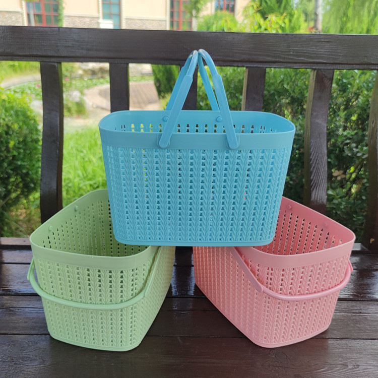 加厚塑料手提镂空洗澡篮 大号购物篮提菜筐子 收纳沐浴篮置物筐