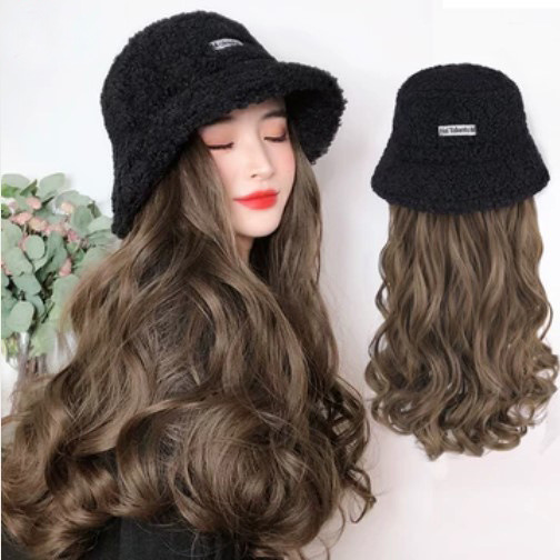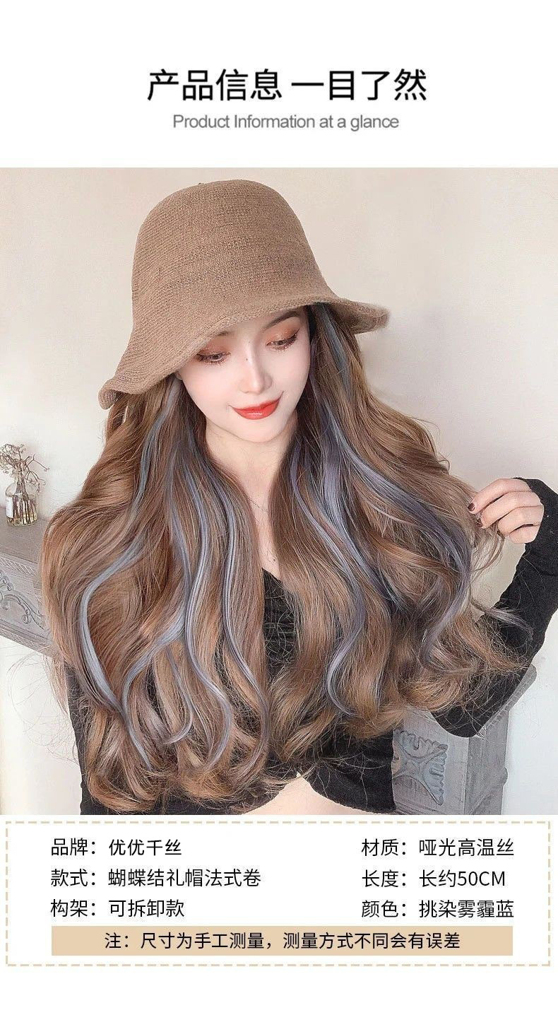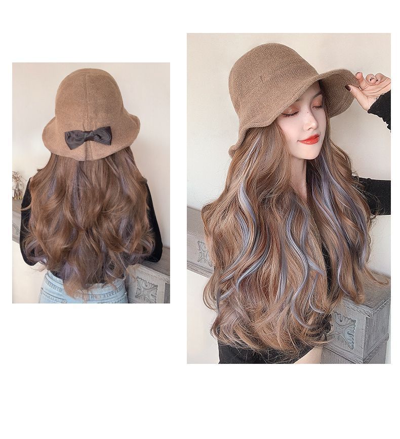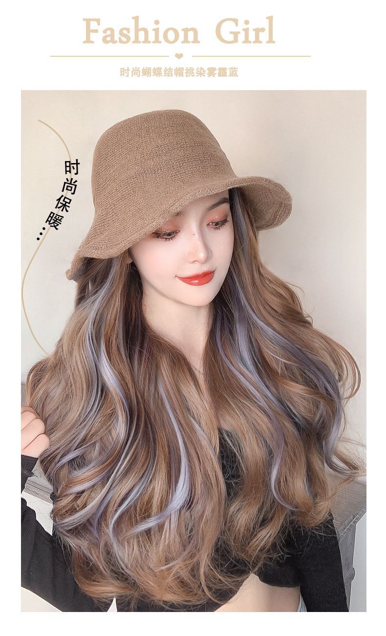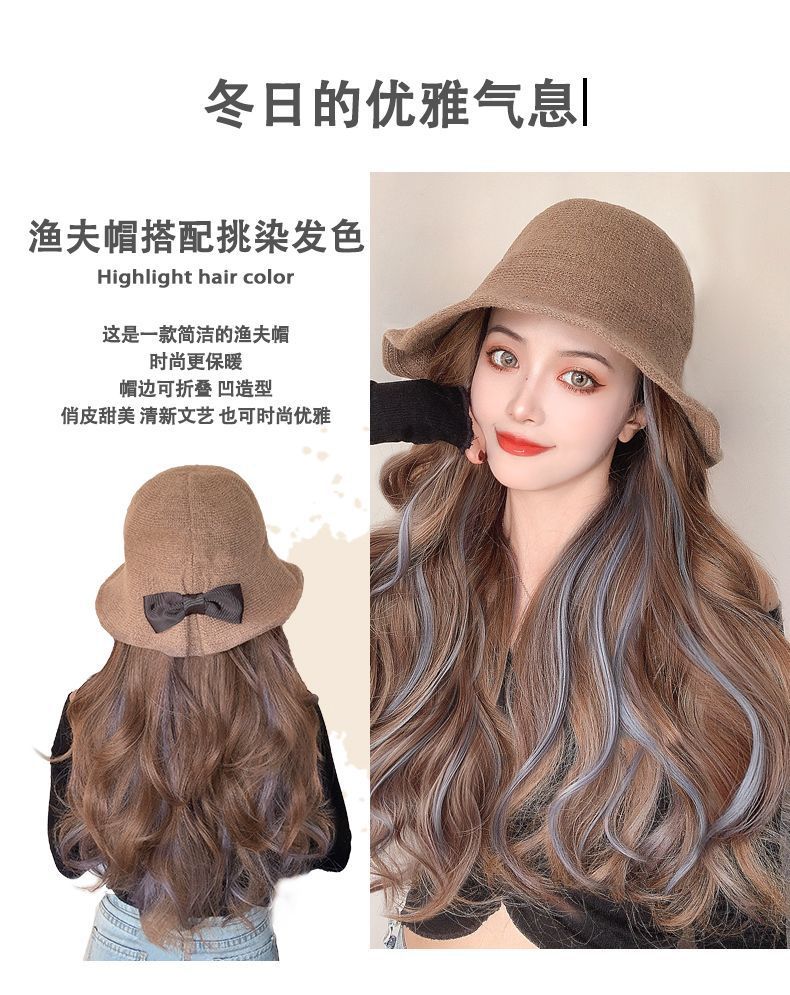 ネットの赤いかつらの帽子は髪の毛の漁師の帽子の女性の秋冬の韓国版のファッションの百合のかわいい一体の帽子の髪を持ちます。