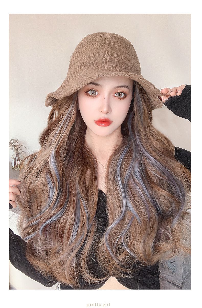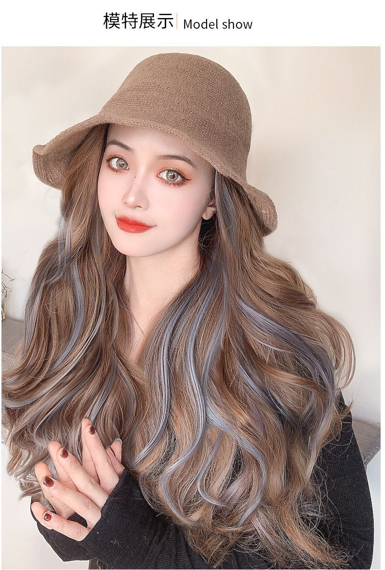 かつらの女性の長い髪の帽子のかつらの一体のファッションの四季のネットの赤い漁師の帽子は長いカールの全体のカバーを染めます。