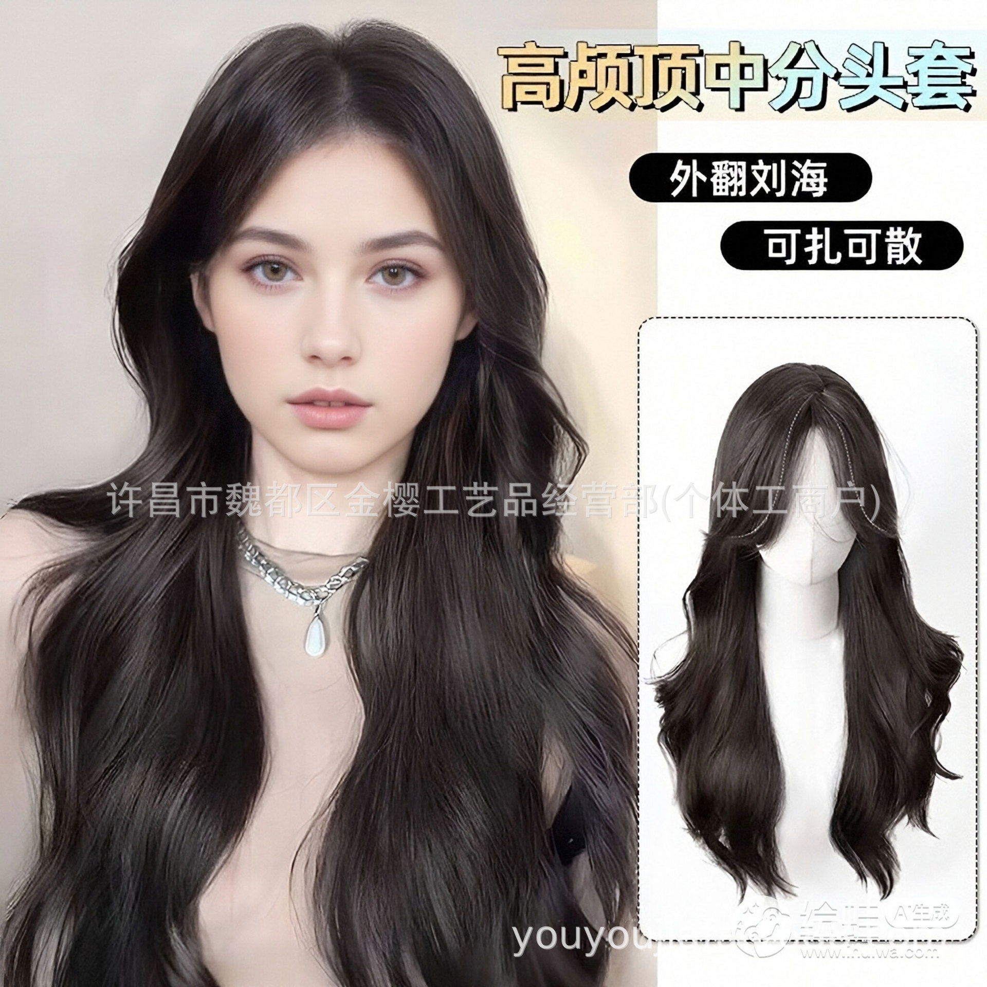 かつらの髪型 長い巻き毛は前髪を平らにしたり、斜めにしたりすることができます
