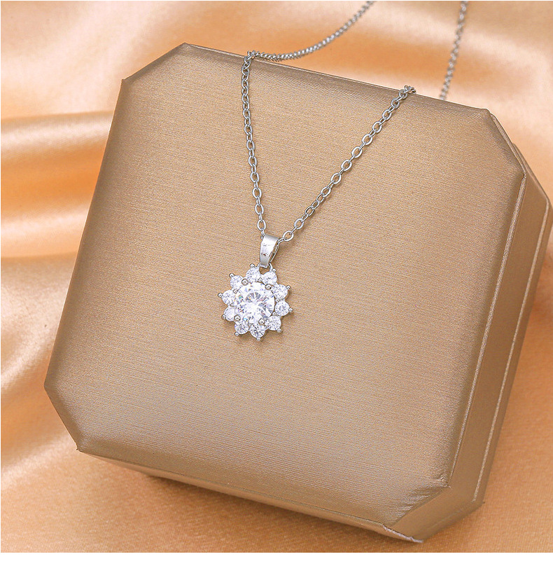 韓国版の気質はジルコンを象眼して精緻なチタン鋼のネックレスの女性のファッションは百合のネットの赤い鎖の鎖の小さい大衆の軽豪華な装飾品です。