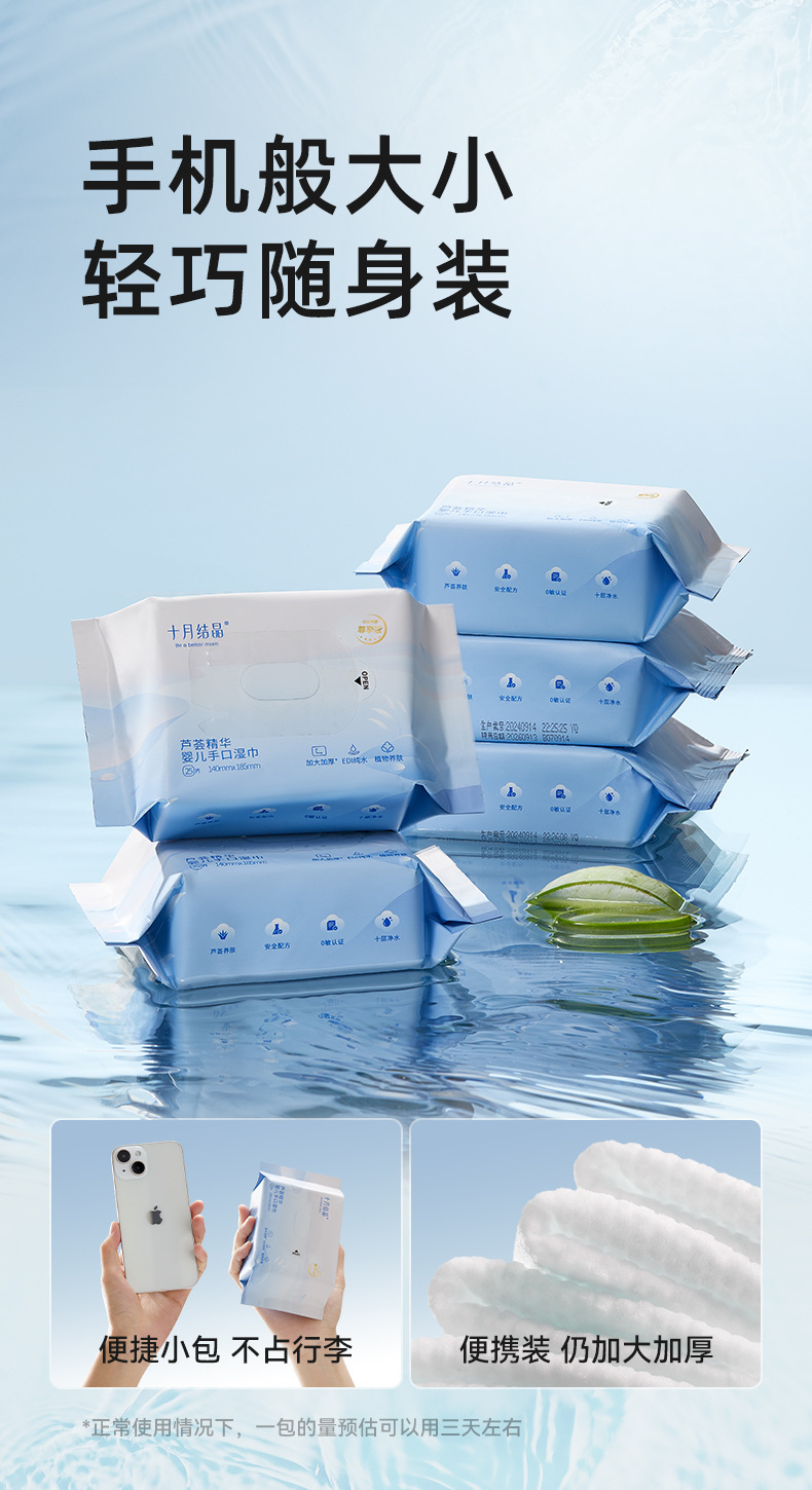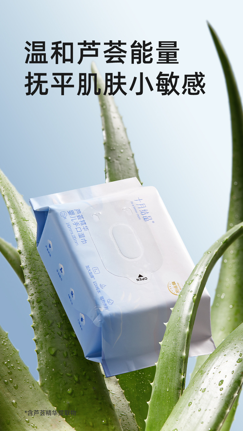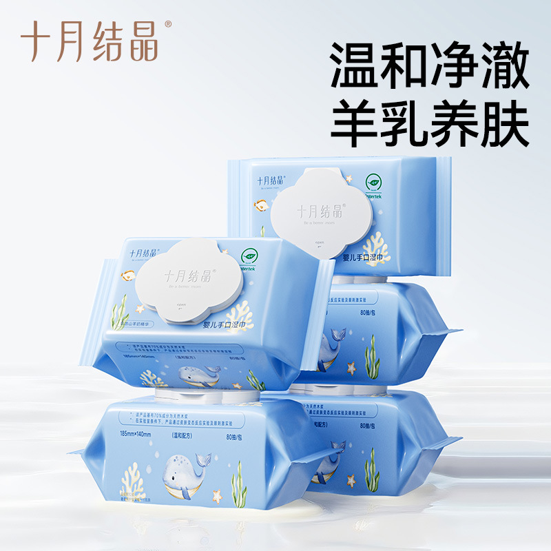 十月结晶羊奶婴幼儿手口湿巾80片宝宝手口专用加大加厚居家外出