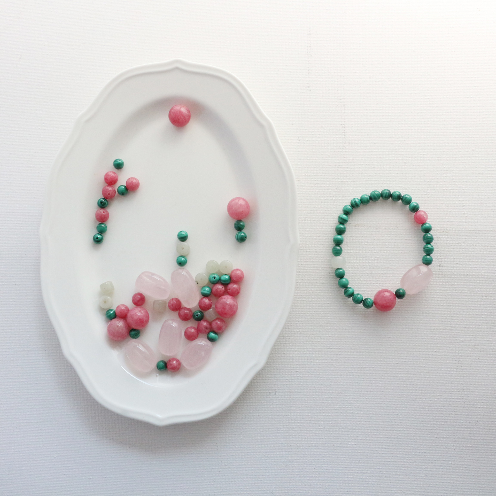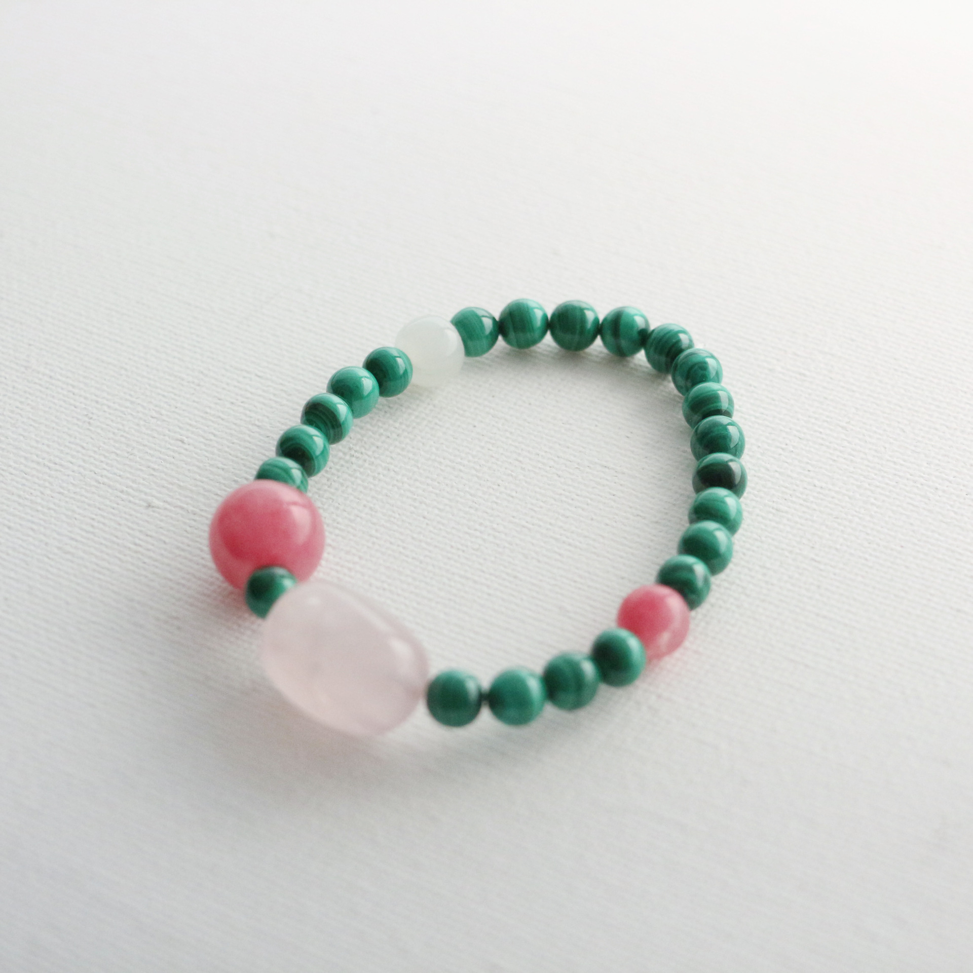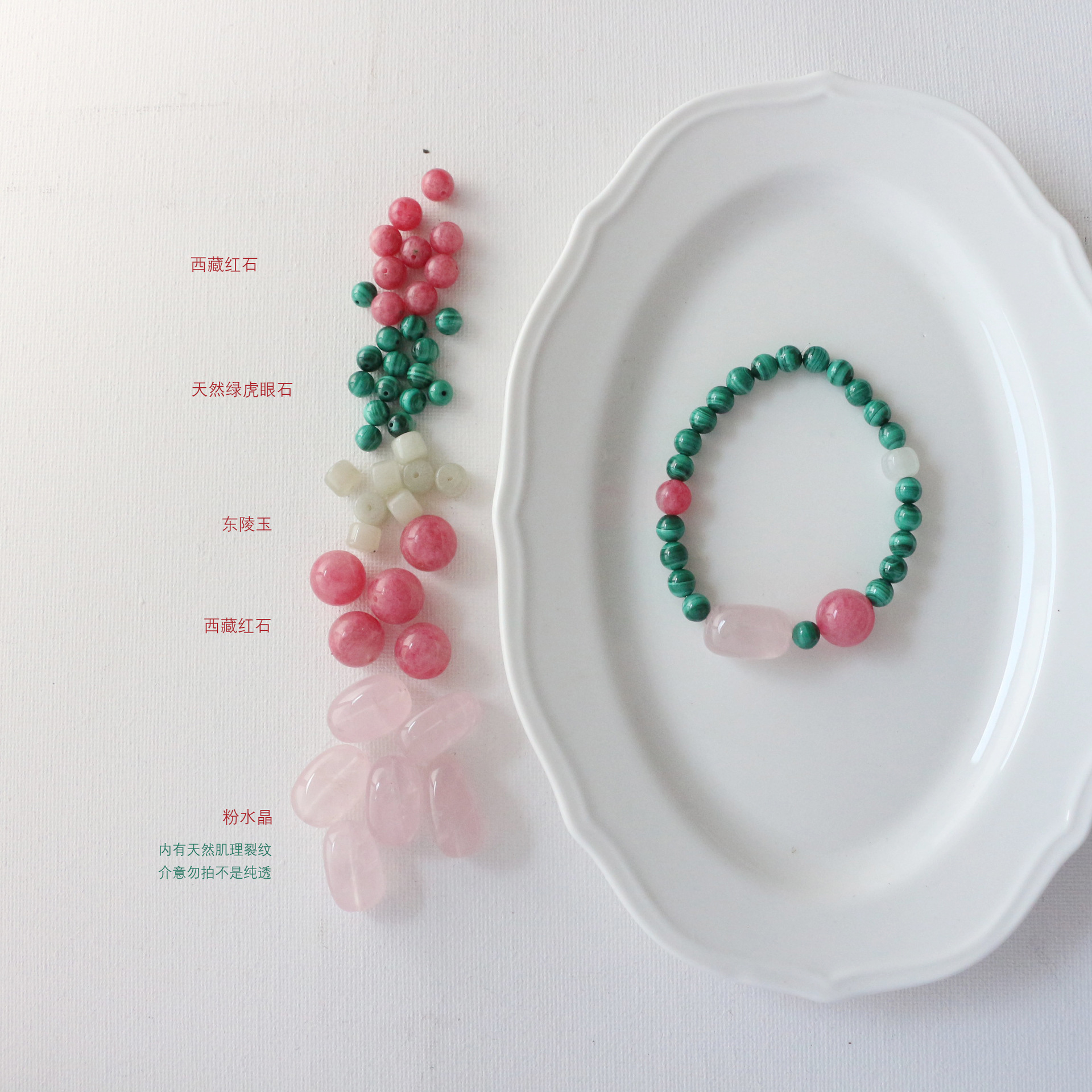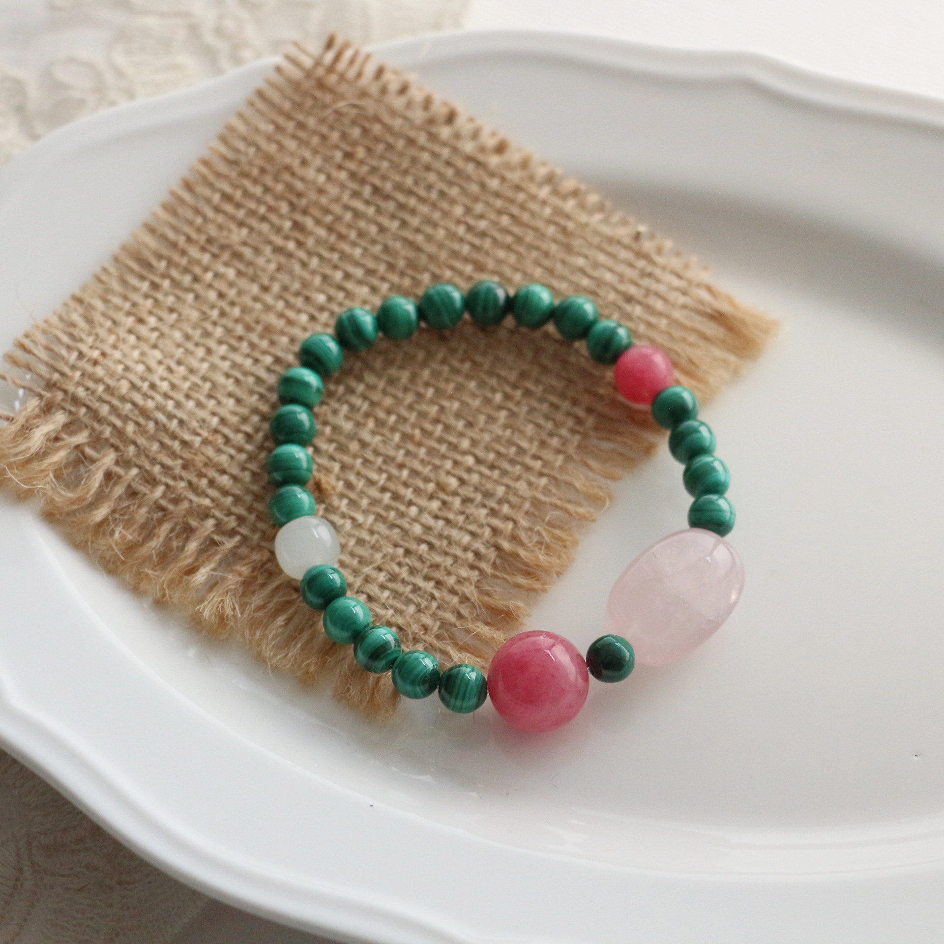 国風手飾り天然緑ピーコック石手串百合ブレスレット