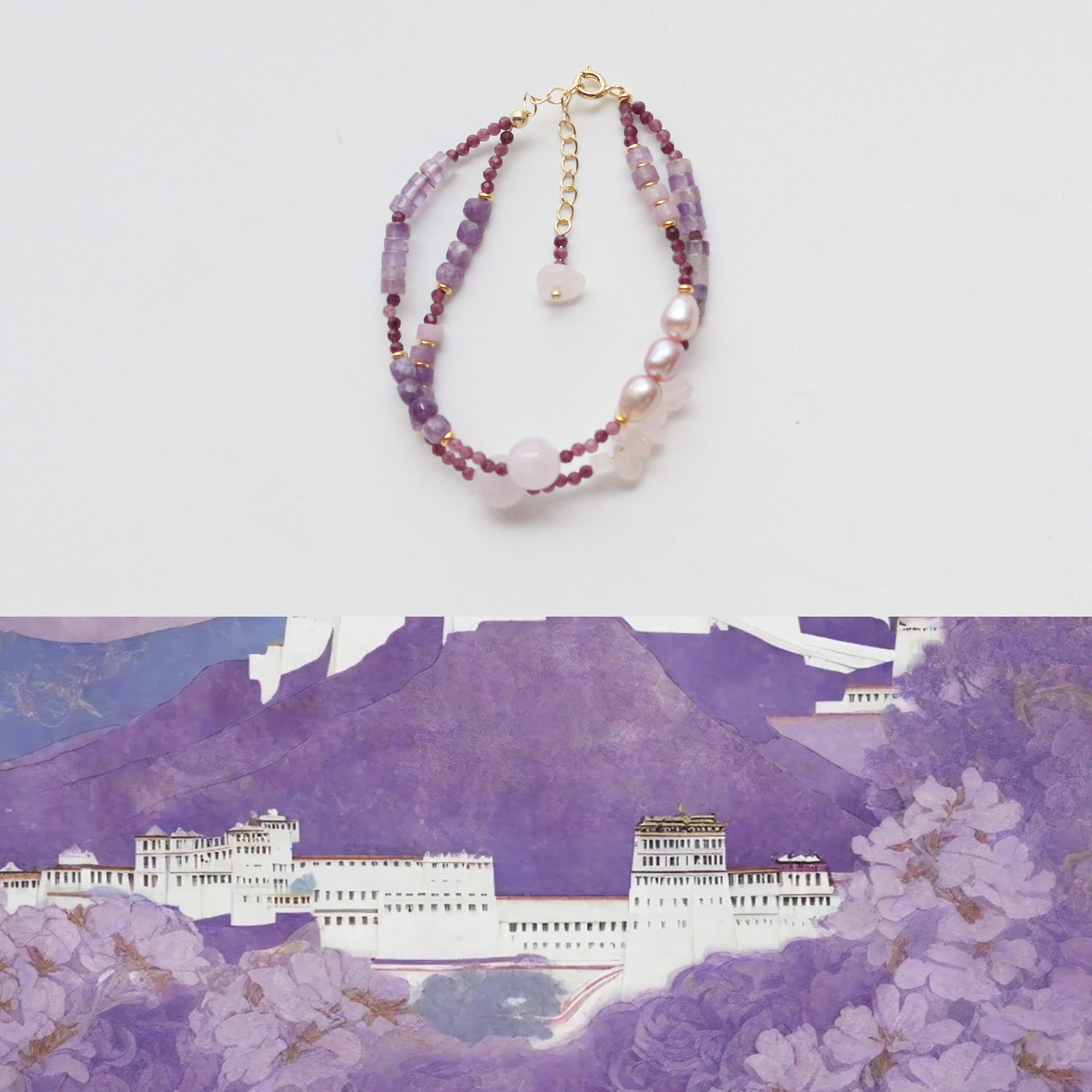 【紫菱】紫水晶黄塔晶四层串珠手串招财纳福新年手串