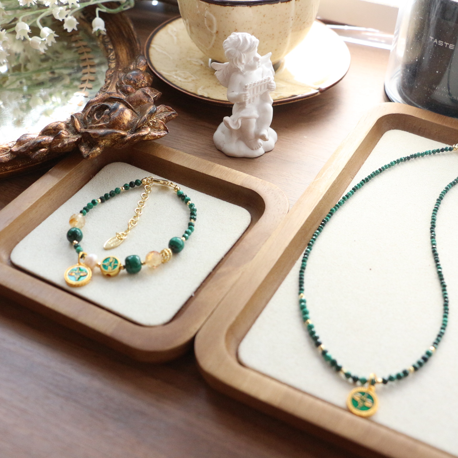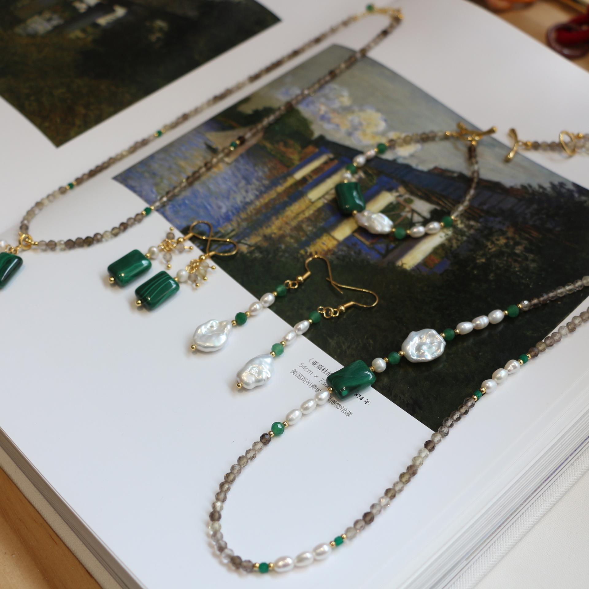 新中国風緑財神孔雀石ブレスレットネックレス黄水晶真珠オリジナルデザイン短ネックレスブレスレット