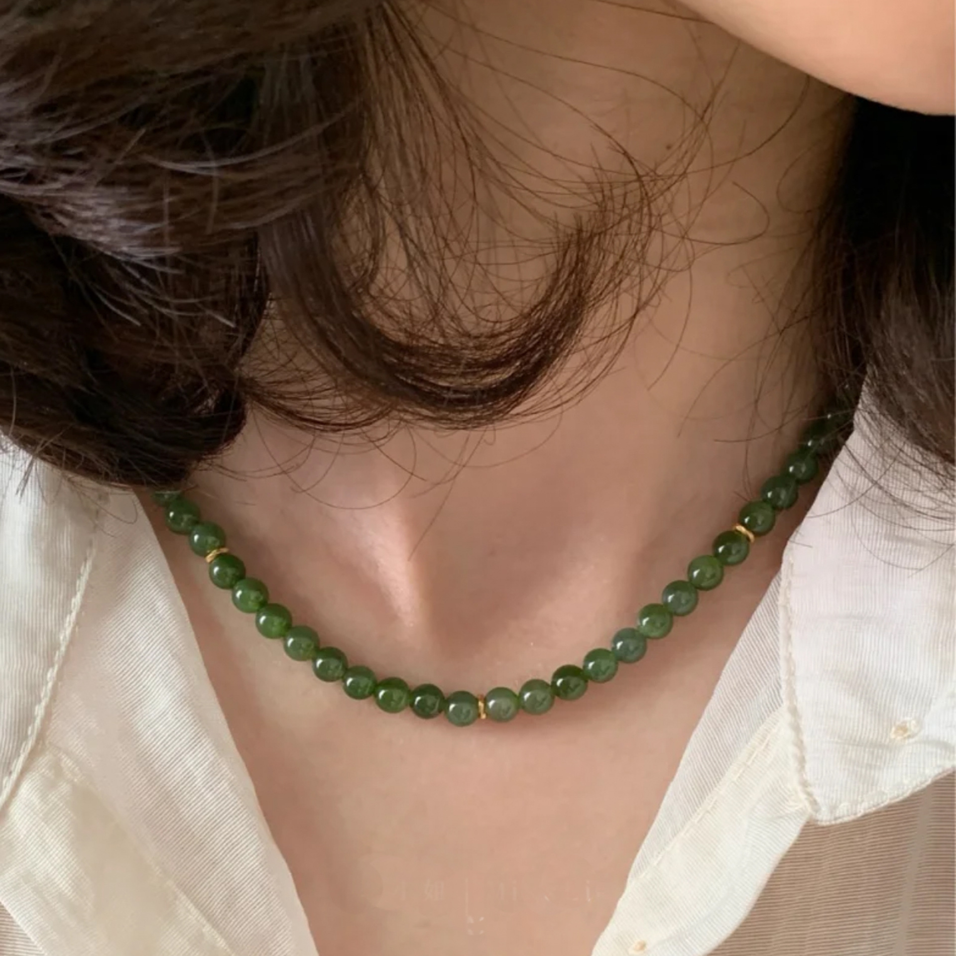 天然和田碧玉シンプル上陸ネックレスブレスレットセットショートネックレス新中国式保色百合デザイナー