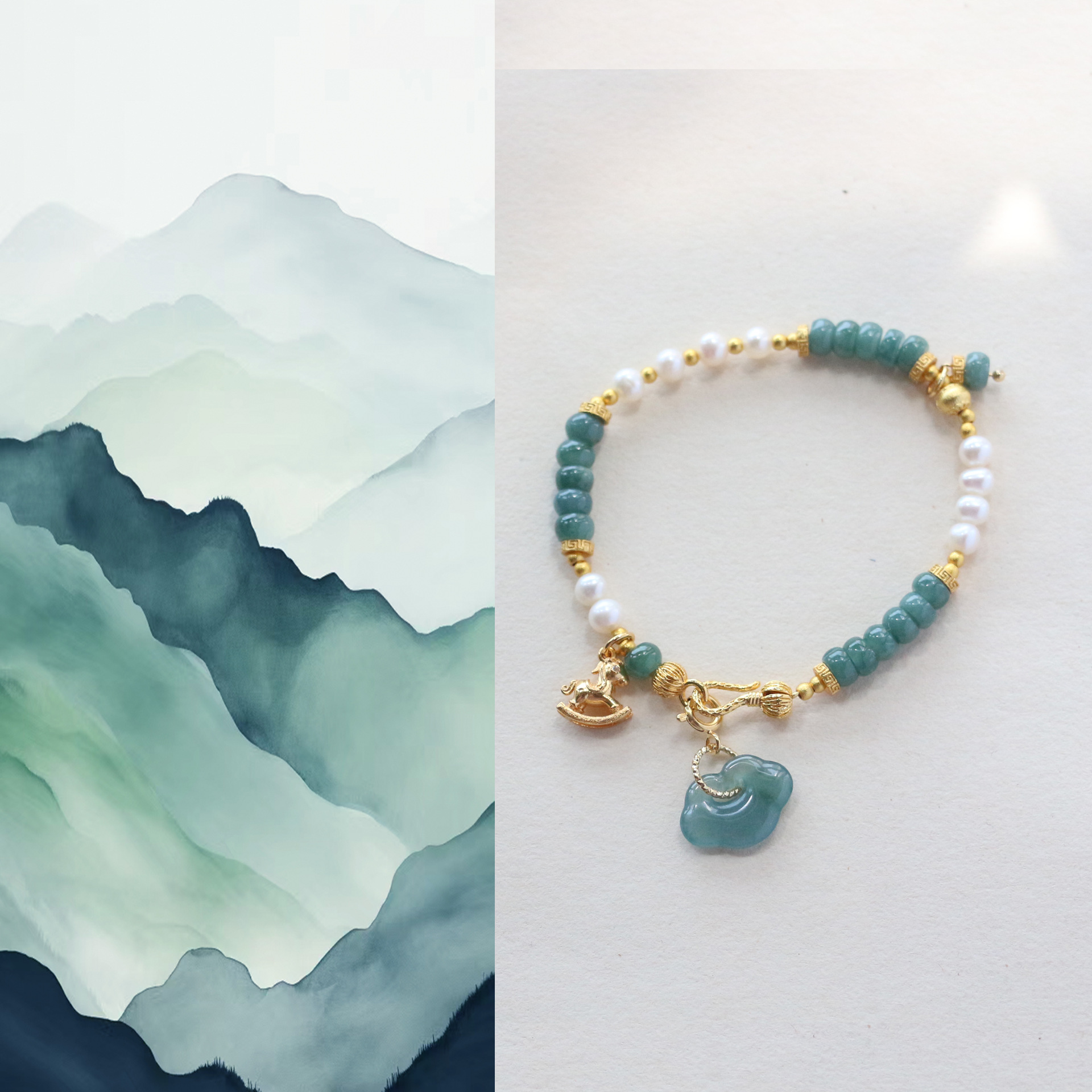 珠光宝气流光溢彩巴洛克淡水珍珠翡翠串珠手串复古手链