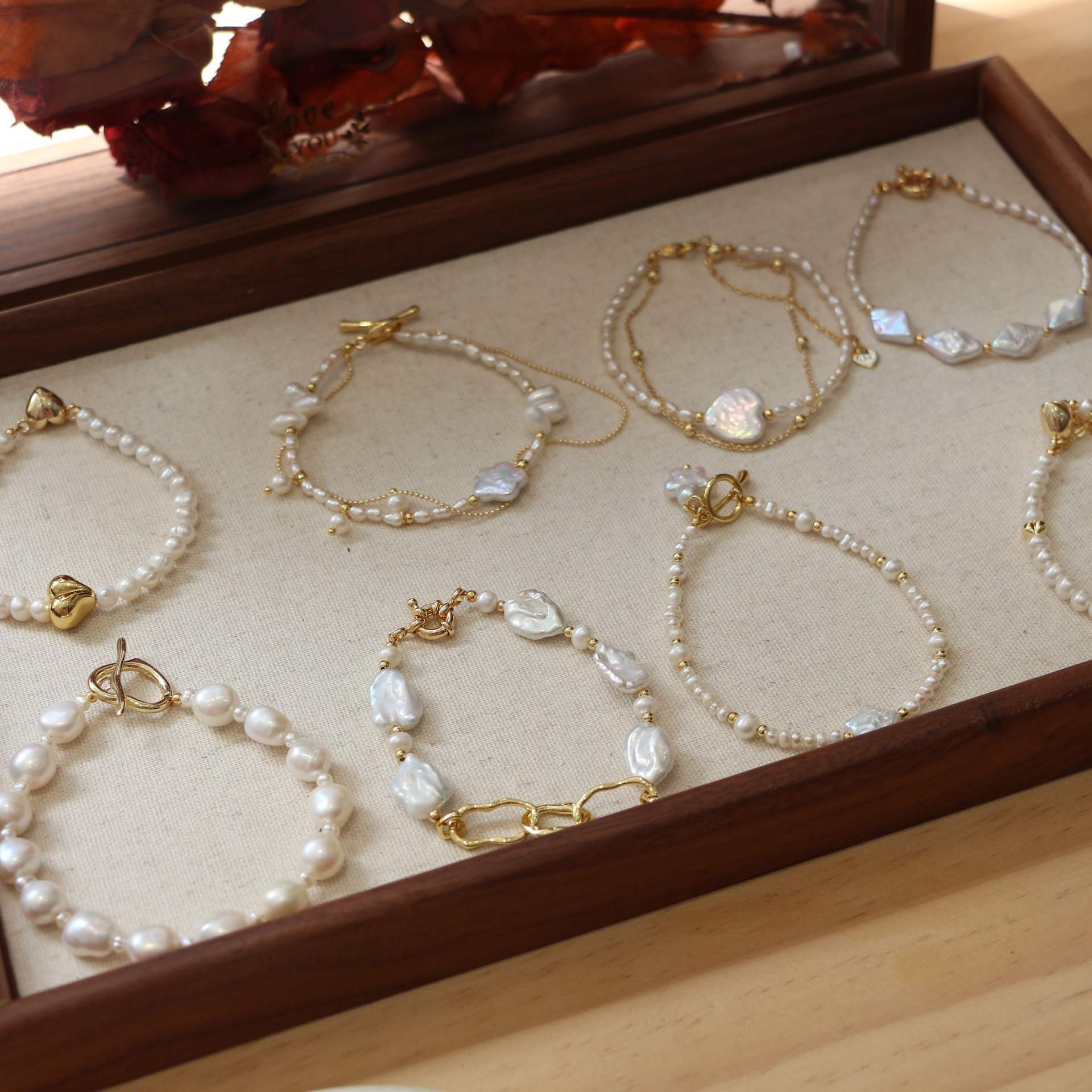 巴洛克淡水珍珠碎银块形状珍珠手链 异形珍珠简约串珠手串