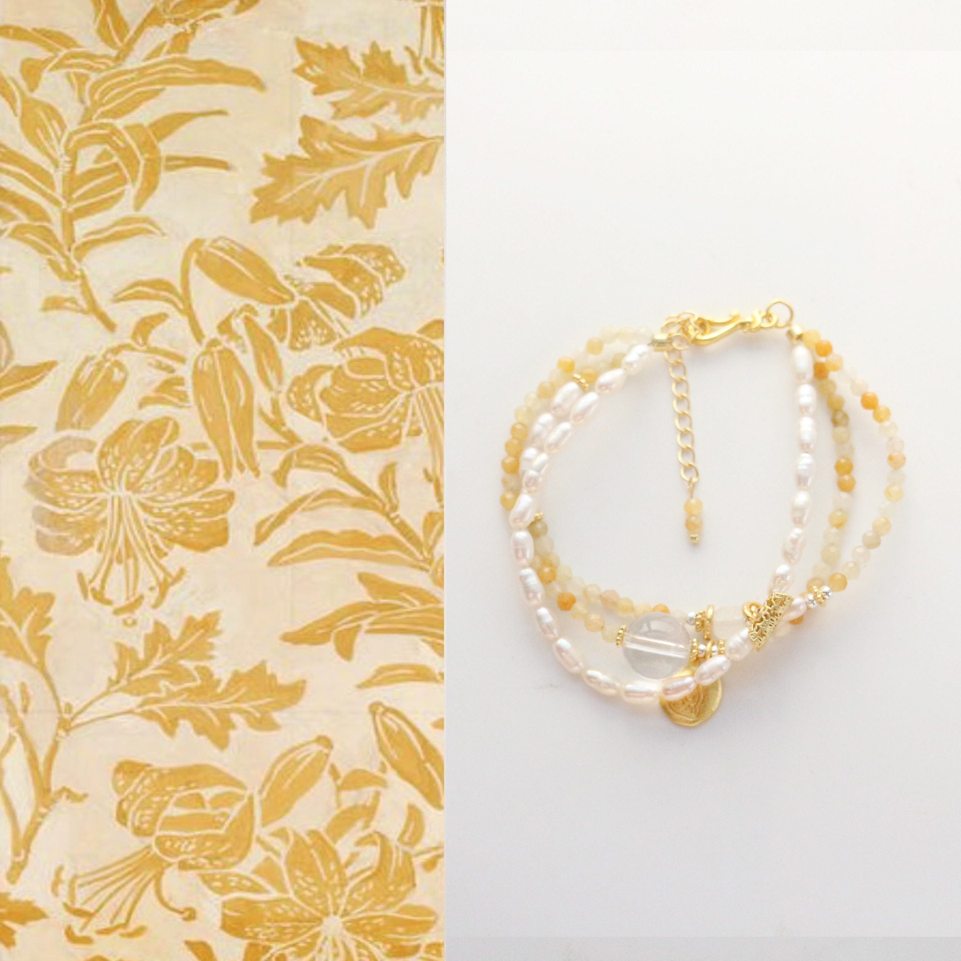 フォアグラ天然石白水晶淡水真珠三層手串暖春新品芳華ブレスレット