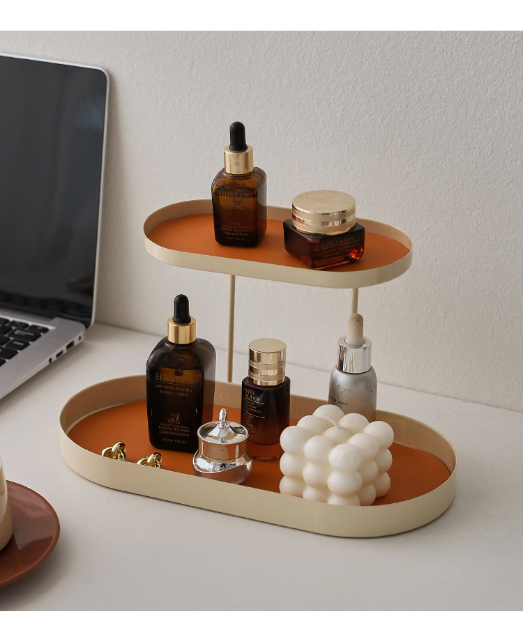 北欧鉄芸二重収納棚デスクトップ雑貨整理棚寝室化粧品香水棚展示棚