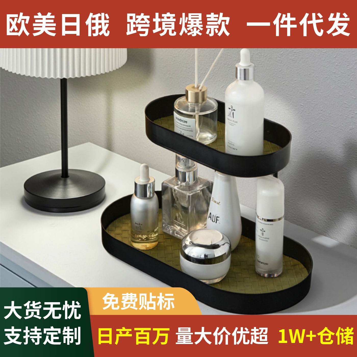 クロスボーダー化粧品収納ボックスアロマデスクトレイ洗面台ドレッサー玄関キー香水シェルフ鉄