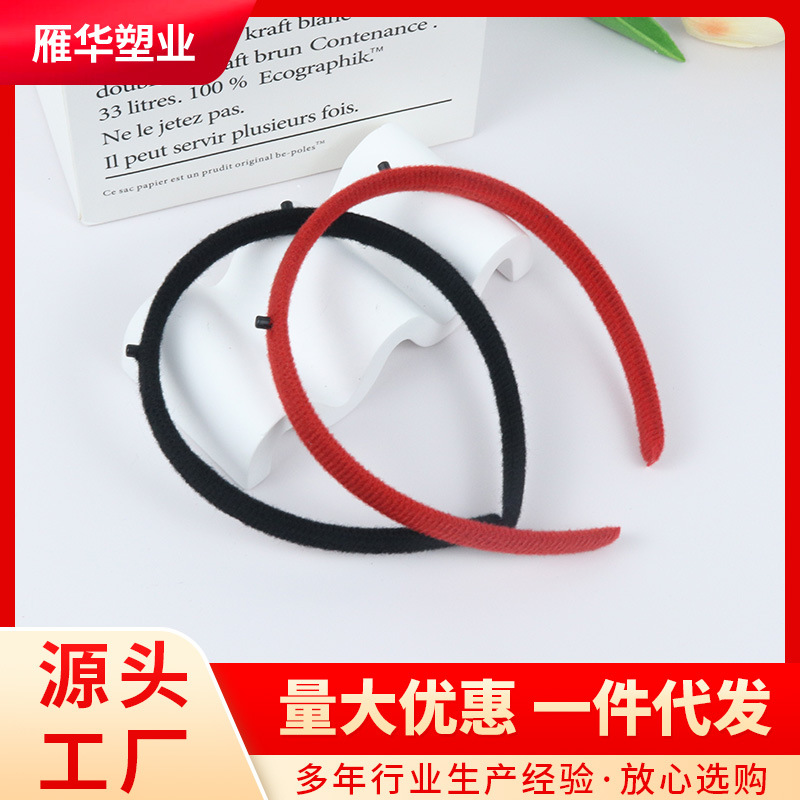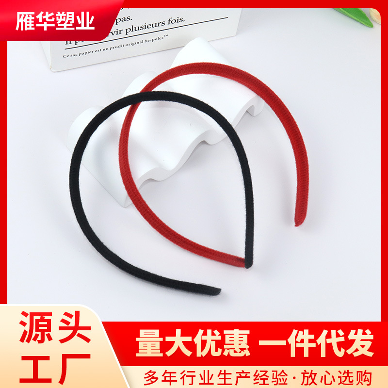 シンプルな純色の無歯毛胚包布カチューシャ1.3平角布カチューシャDIYクリスマス髪飾り