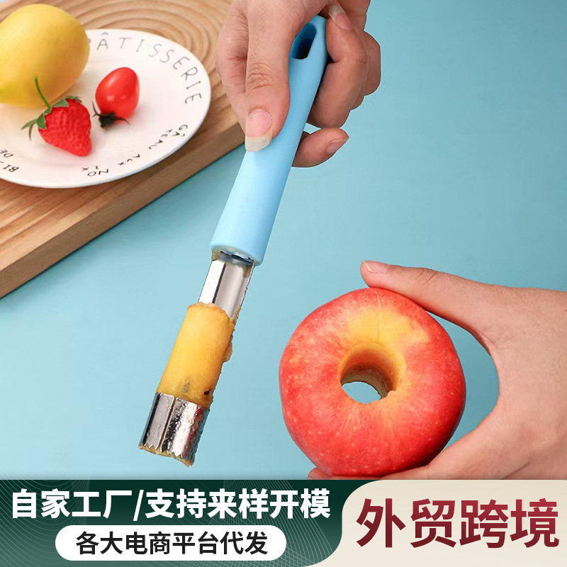 ステンレスリンゴ果物芯取り器家庭用核神器シリコンハンドルナツメサンザシ核取り器4点セット
