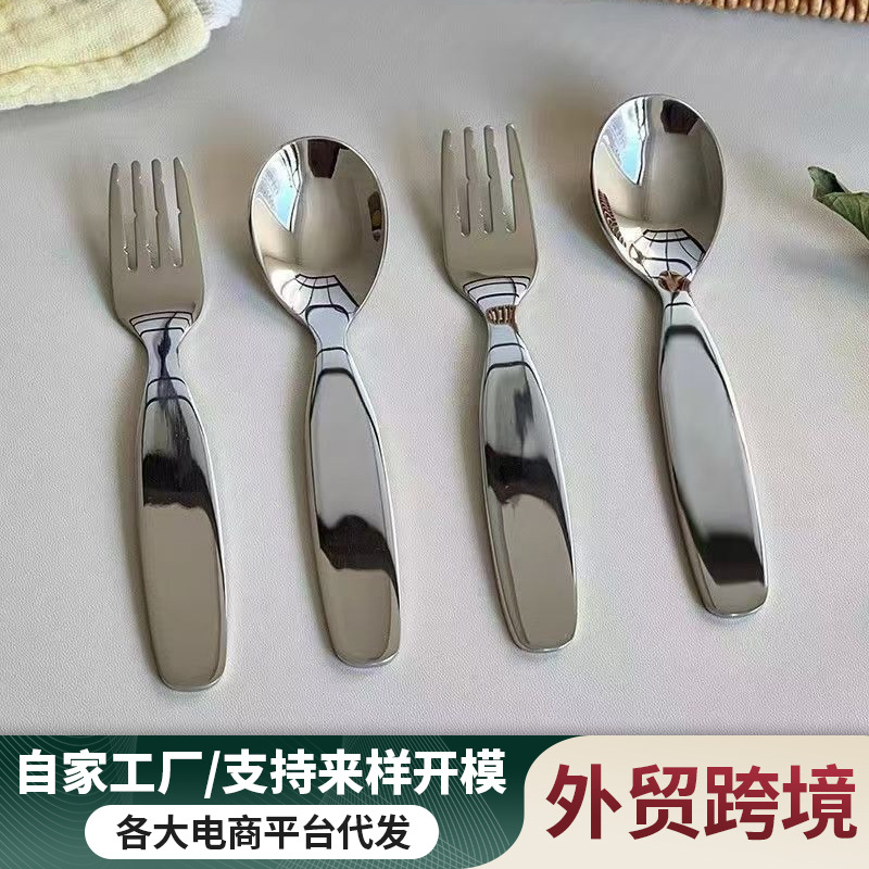 不锈钢加厚宽柄叉勺圆嘟嘟甜品勺家用宝宝米饭勺水果叉儿童勺套装