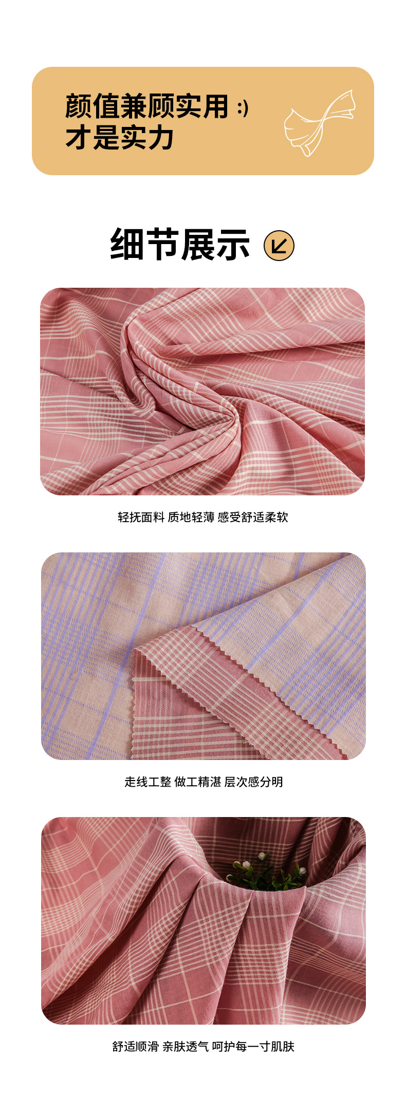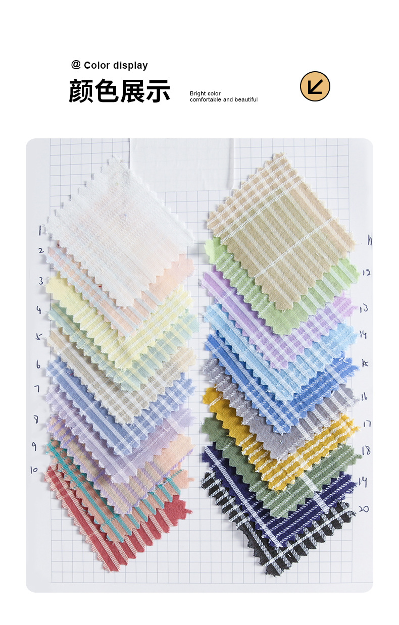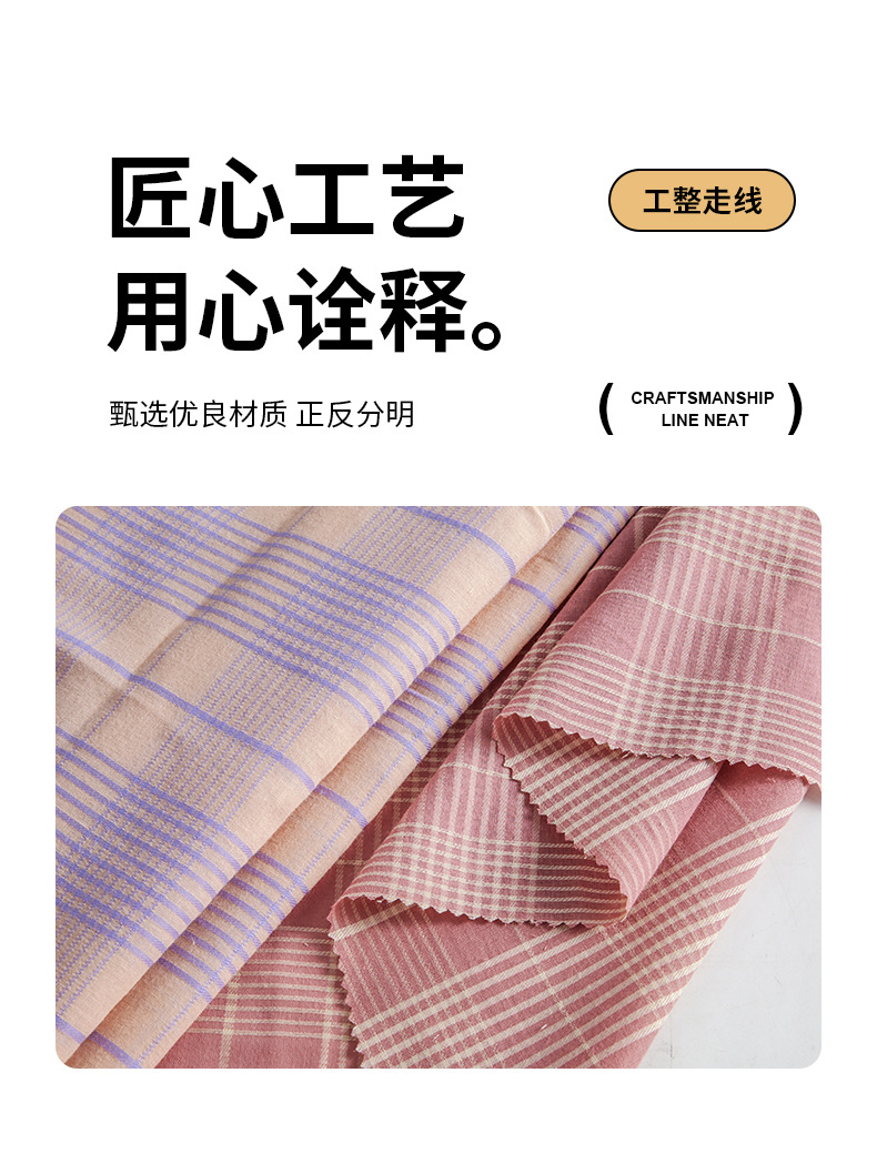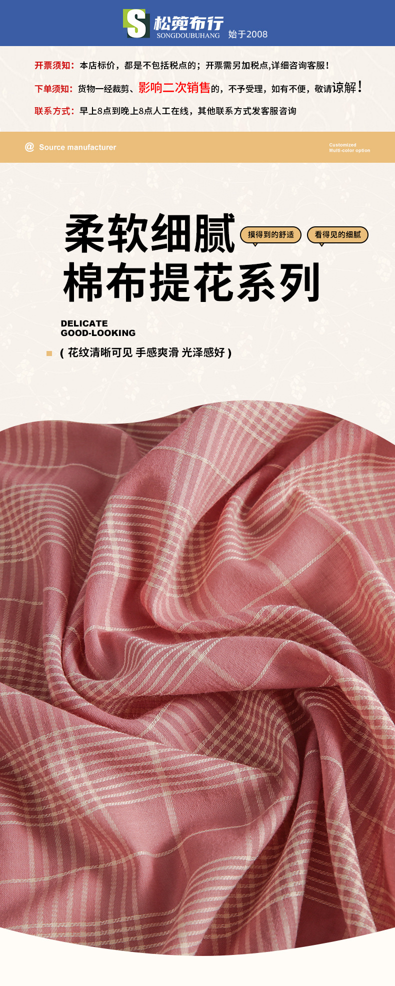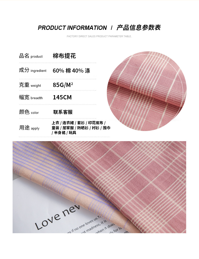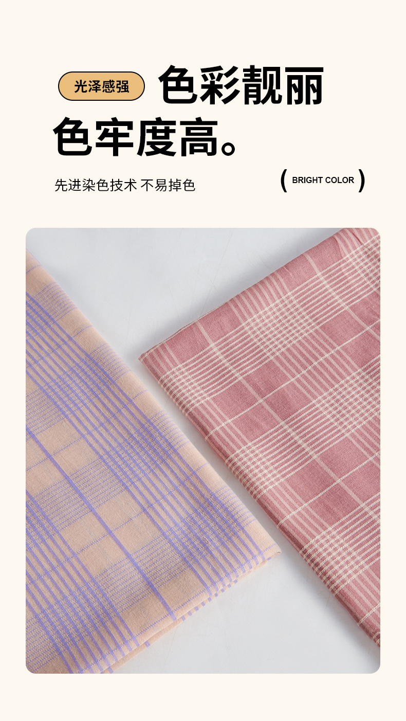 ポリエステル綿混紡色織ジャカード生地ポリエステル綿砂洗格子布工場ファッション婦人服子供服生地卸売り