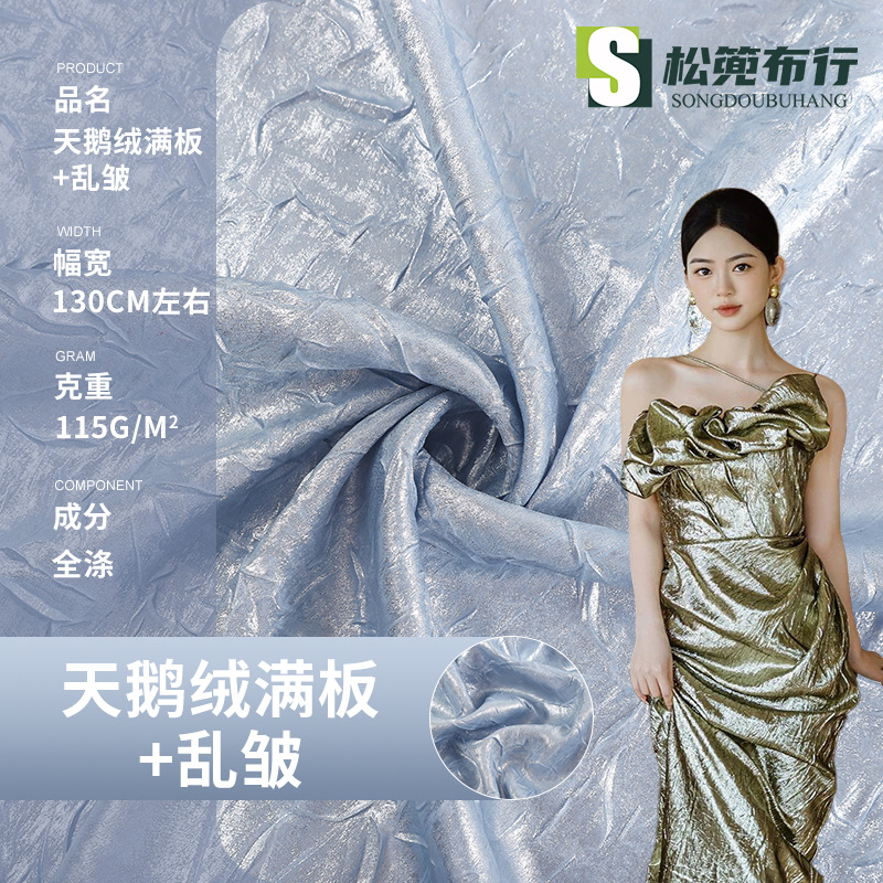 ベルベットの板いっぱいのシワ無地生地春夏の全ポリエステルの肌に優しいシャツワンピースの演出服生地