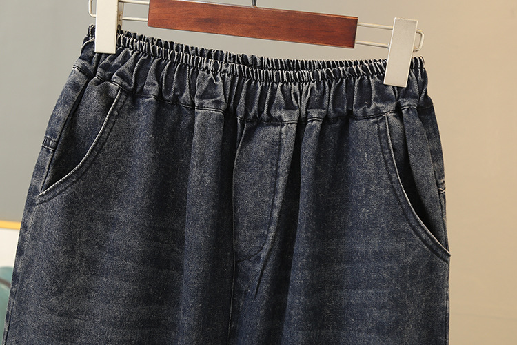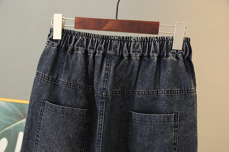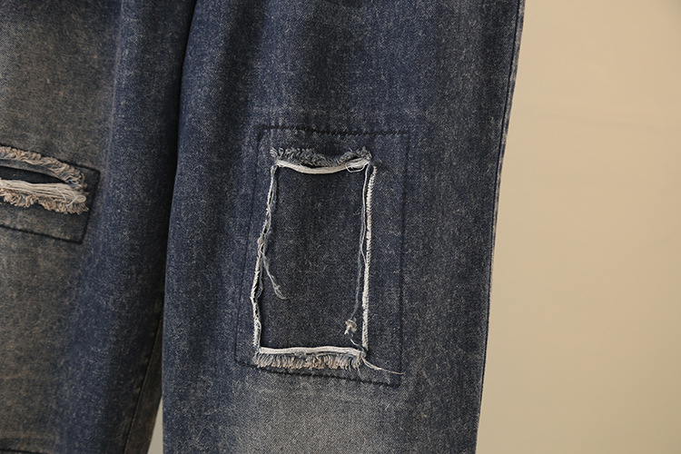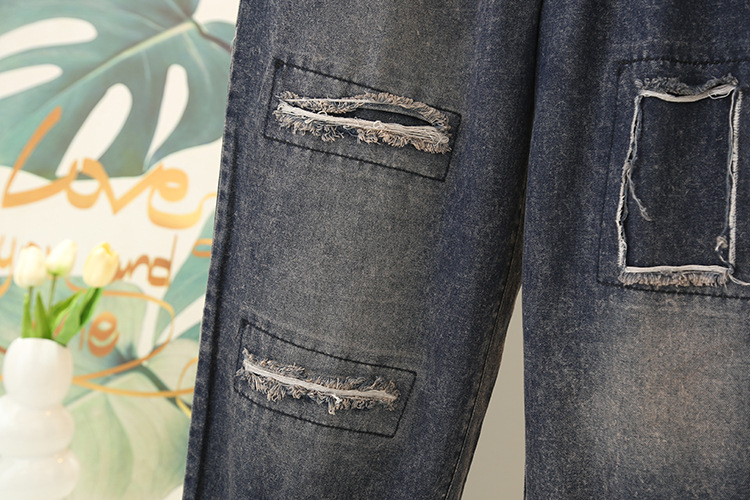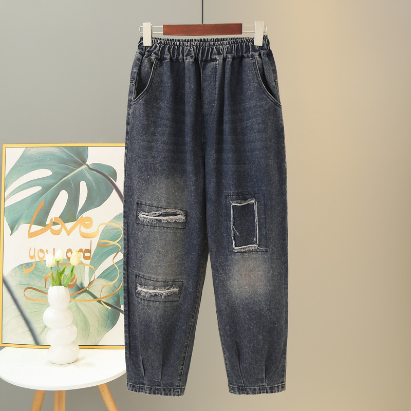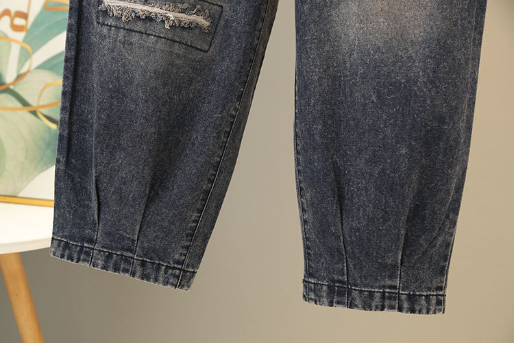 大きいサイズの女性のズボンの高腰のハーレムのズボンの2024秋のファッションの破れた穴は布のジーパンの太っている妹を貼って街の懐古のズボンを揚げます8982
