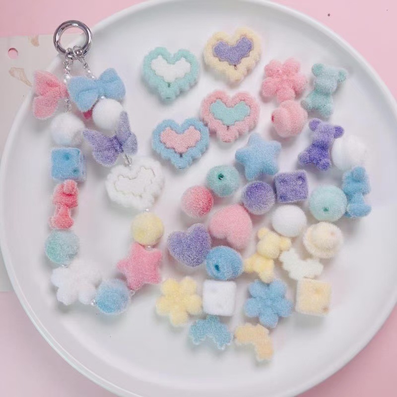 秋冬长毛植绒胖爱心五角星直孔亚克力串珠diy手机链包挂材料饰品