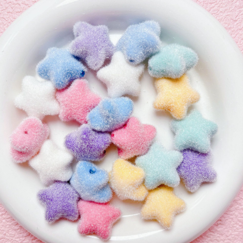 毛むくじゃらビーズ植毛長毛五角星直孔散珠diy携帯電話チェーンストラップ材料アクセサリー部品