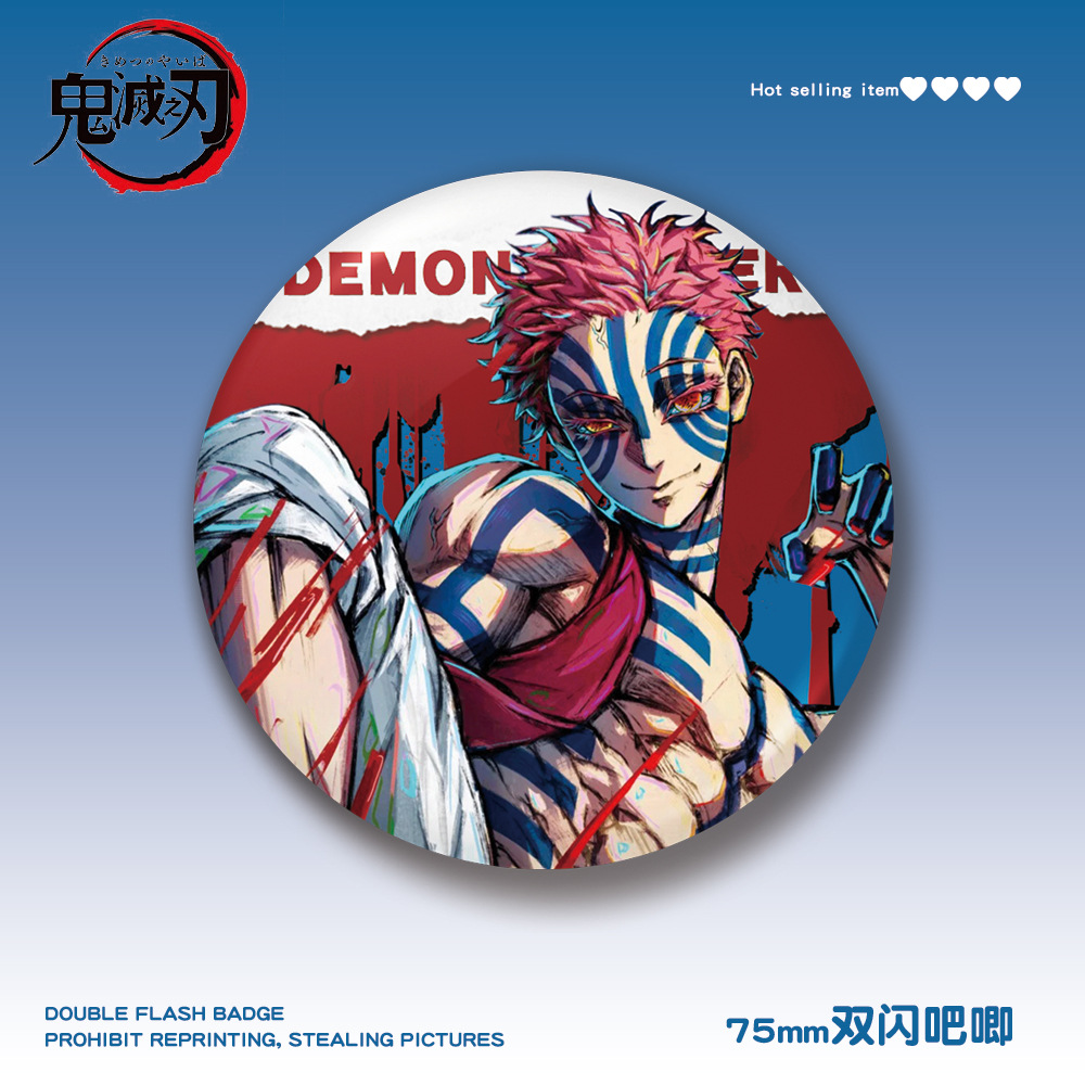 鬼灭之刃75mm双闪吧唧黑死牟童磨猗窝座谷子徽章pet动漫周边