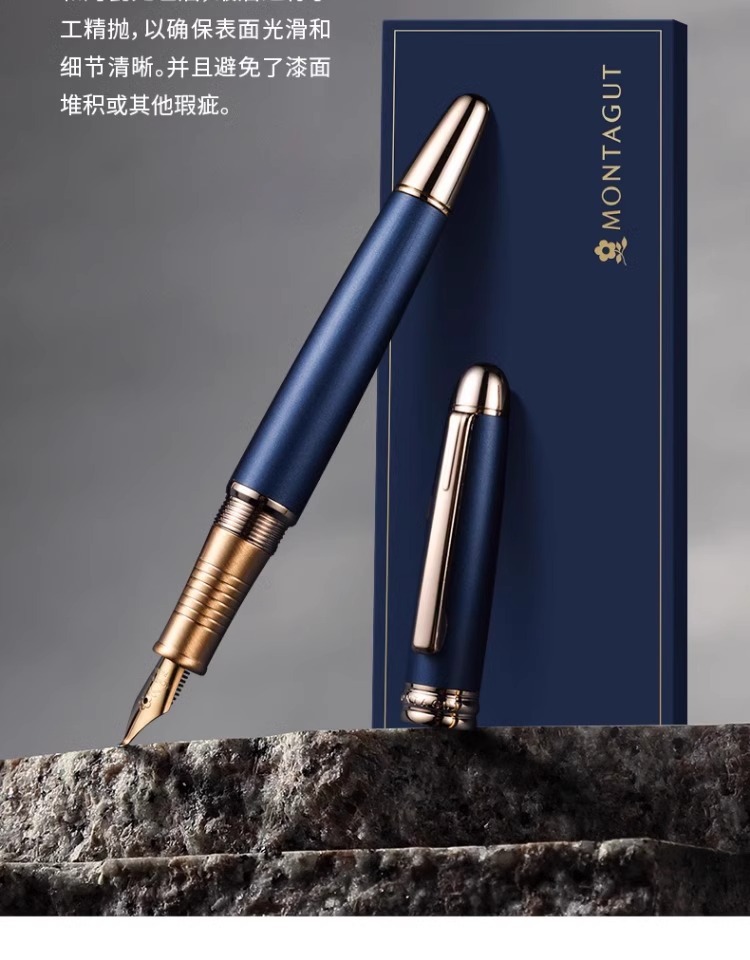 MAJOHN末匠P136暮蓝树脂包胶金属活塞钢笔立体花纹防滑不锈钢笔握
