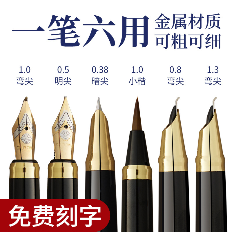 電気メッキつや消しブラック/シルバーハイエンド No.35 大明チップ万年筆書道練習インクバッグインクペン彫刻ロゴ