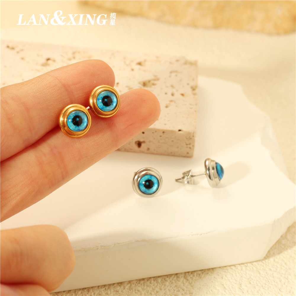跨境欧美恶魔天使之眼钛钢项链耳钉复古轻奢耳饰女高级感耳环饰品