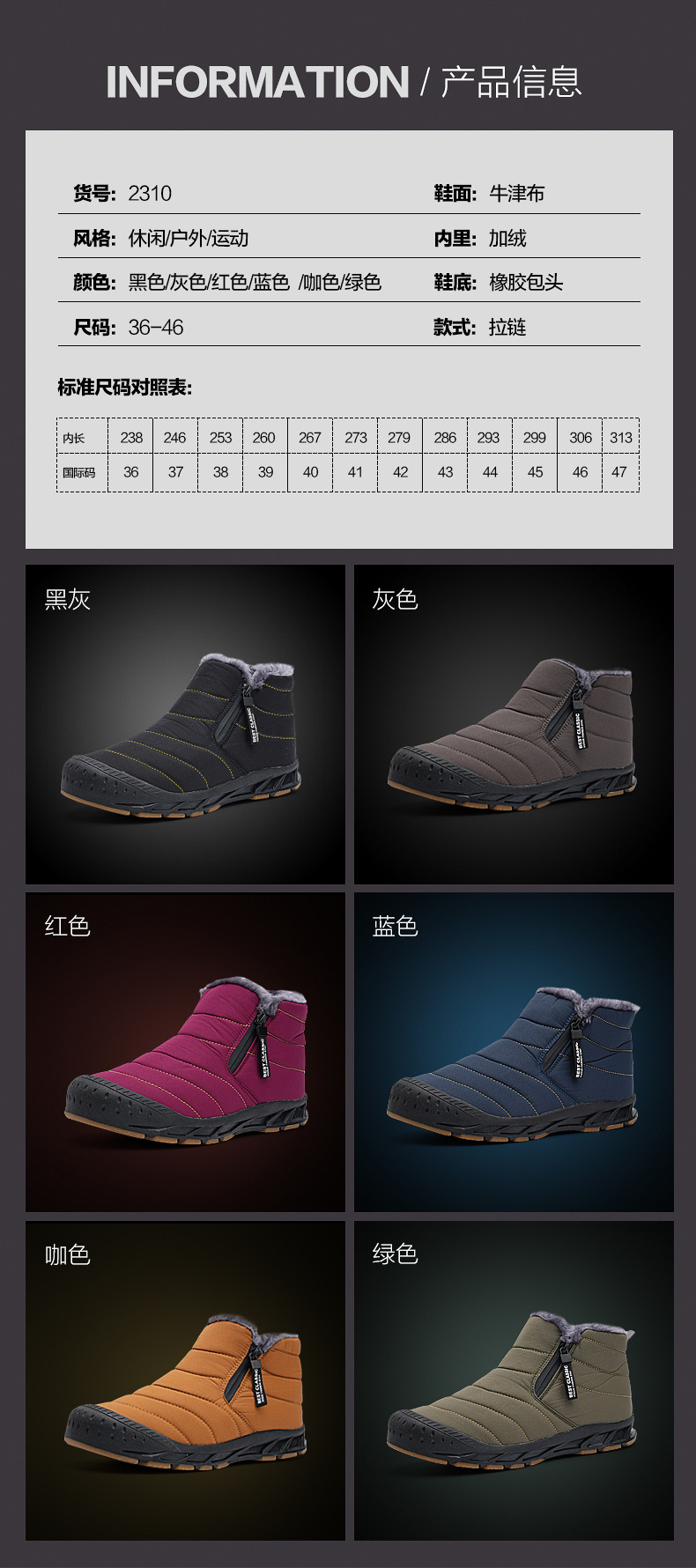 秋冬新品大码棉鞋休闲男女情侣加绒加厚防寒保暖雪地靴防滑登山鞋