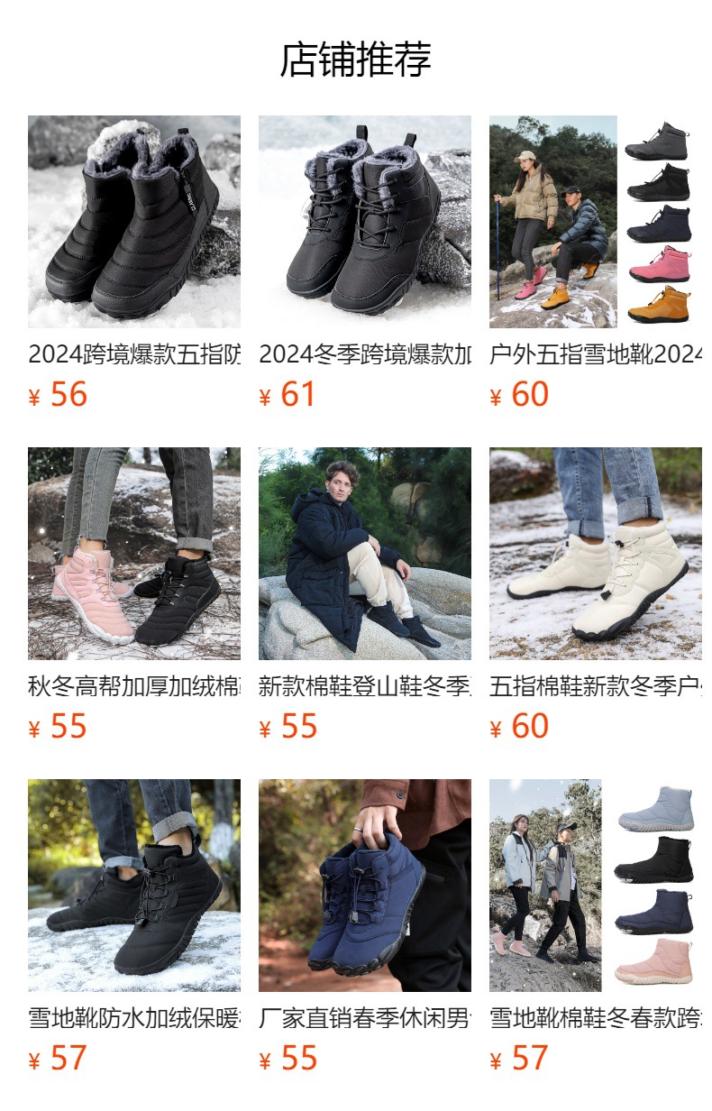 新款雪地靴男防滑防水加绒保暖五指鞋棉鞋女厚底赤足冬季情侣靴子