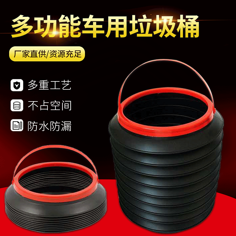 新款带盖车载多功能折叠垃圾桶车内用品便携折叠桶