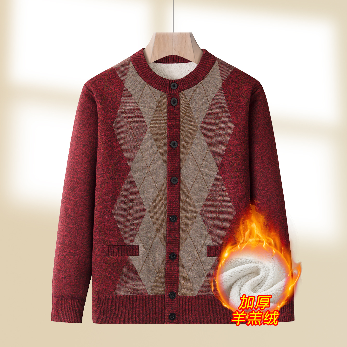 加绒毛衣外套男士冬季开衫爸爸装加厚时尚排扣爷爷针织衫宽松版型