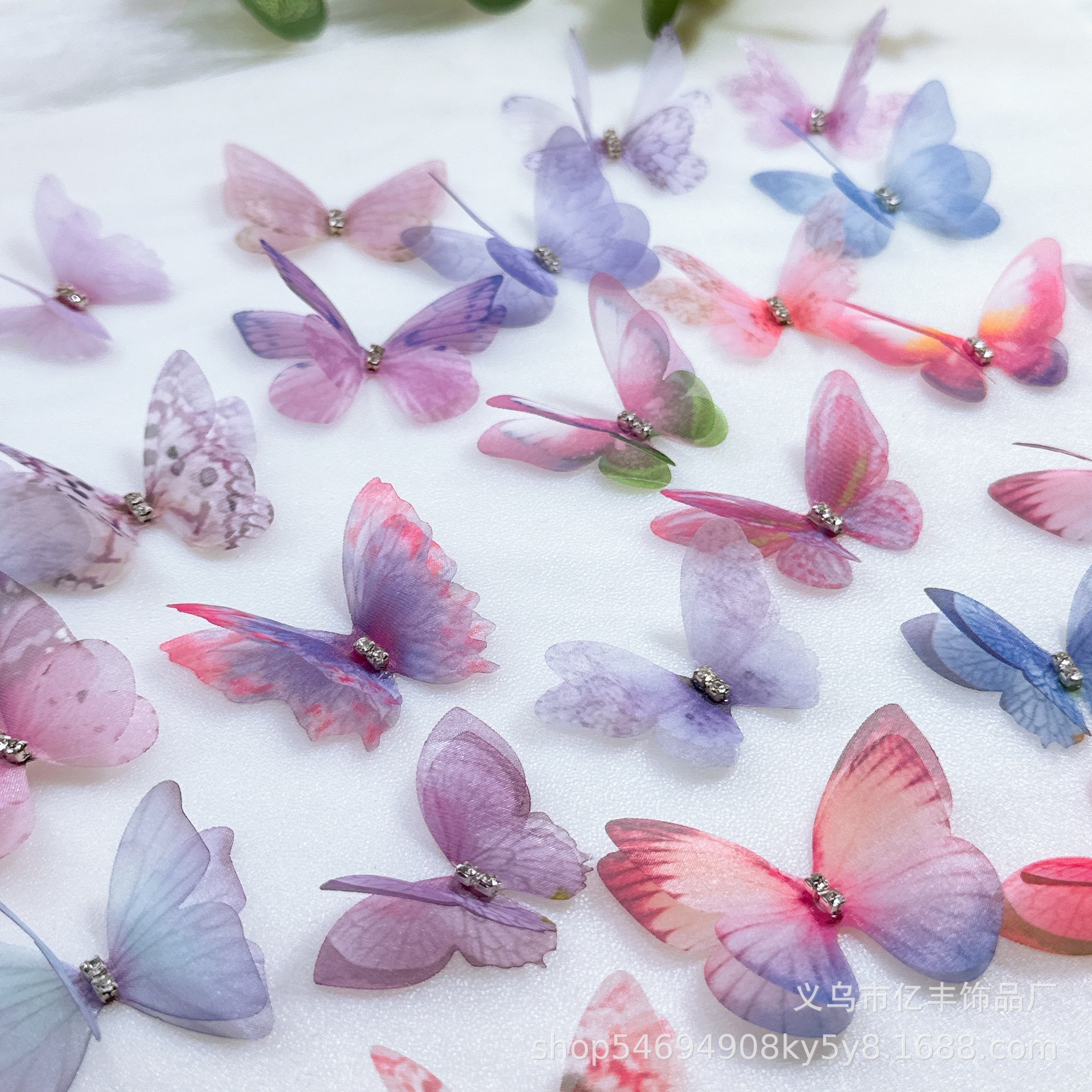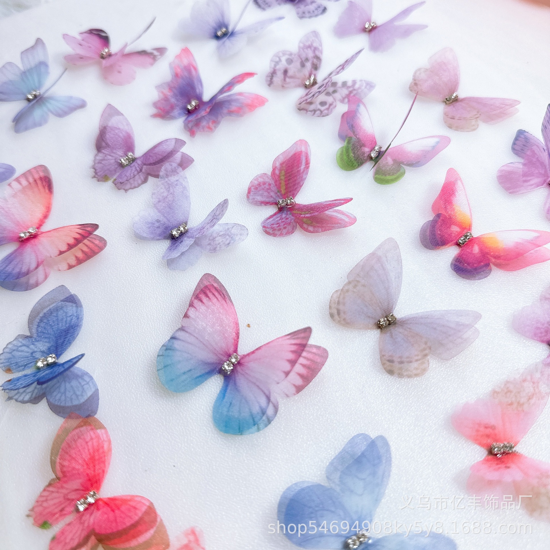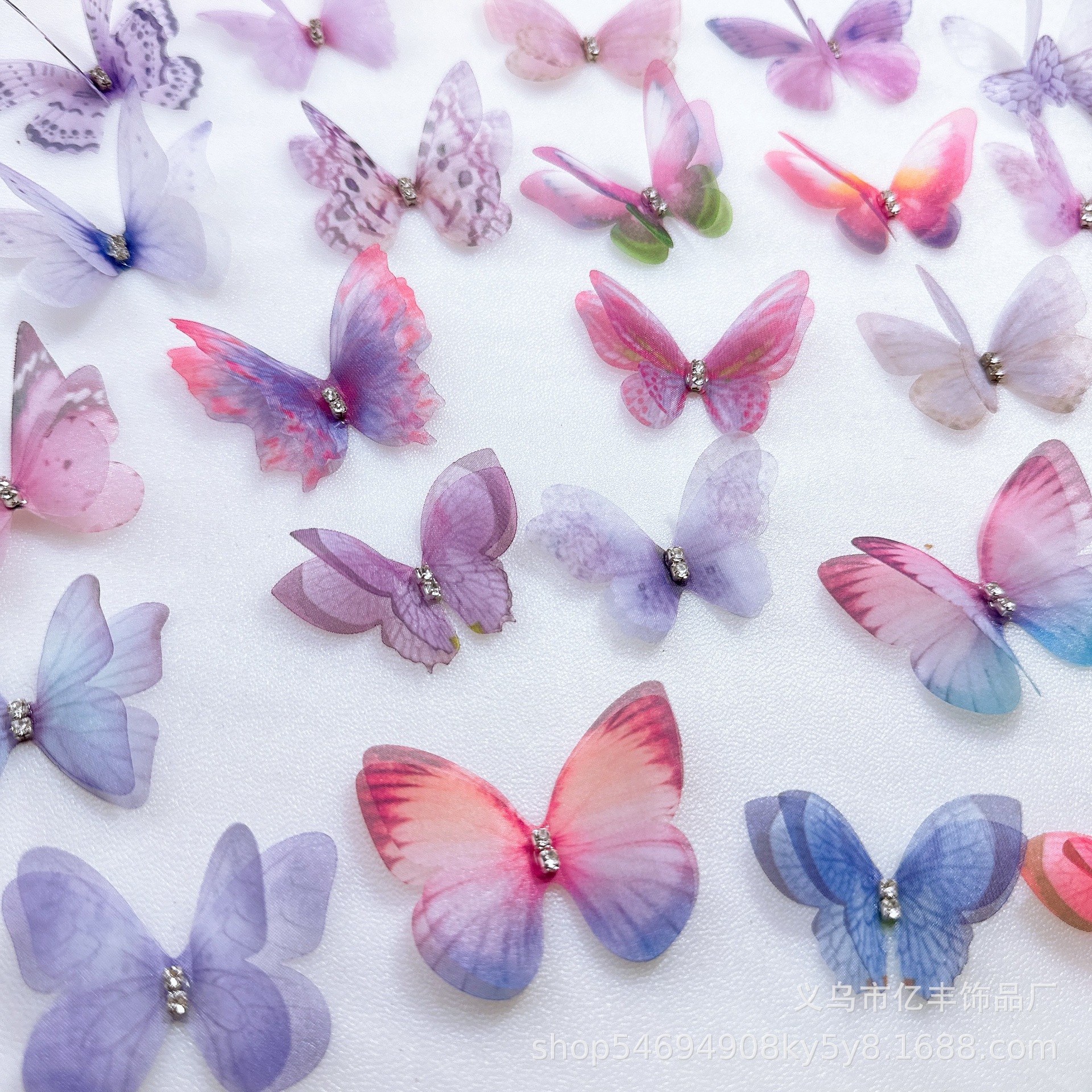二重立体プラスドリル薄紗蝶夢幻ins起爆花束蝶diy花嫁髪飾り材料