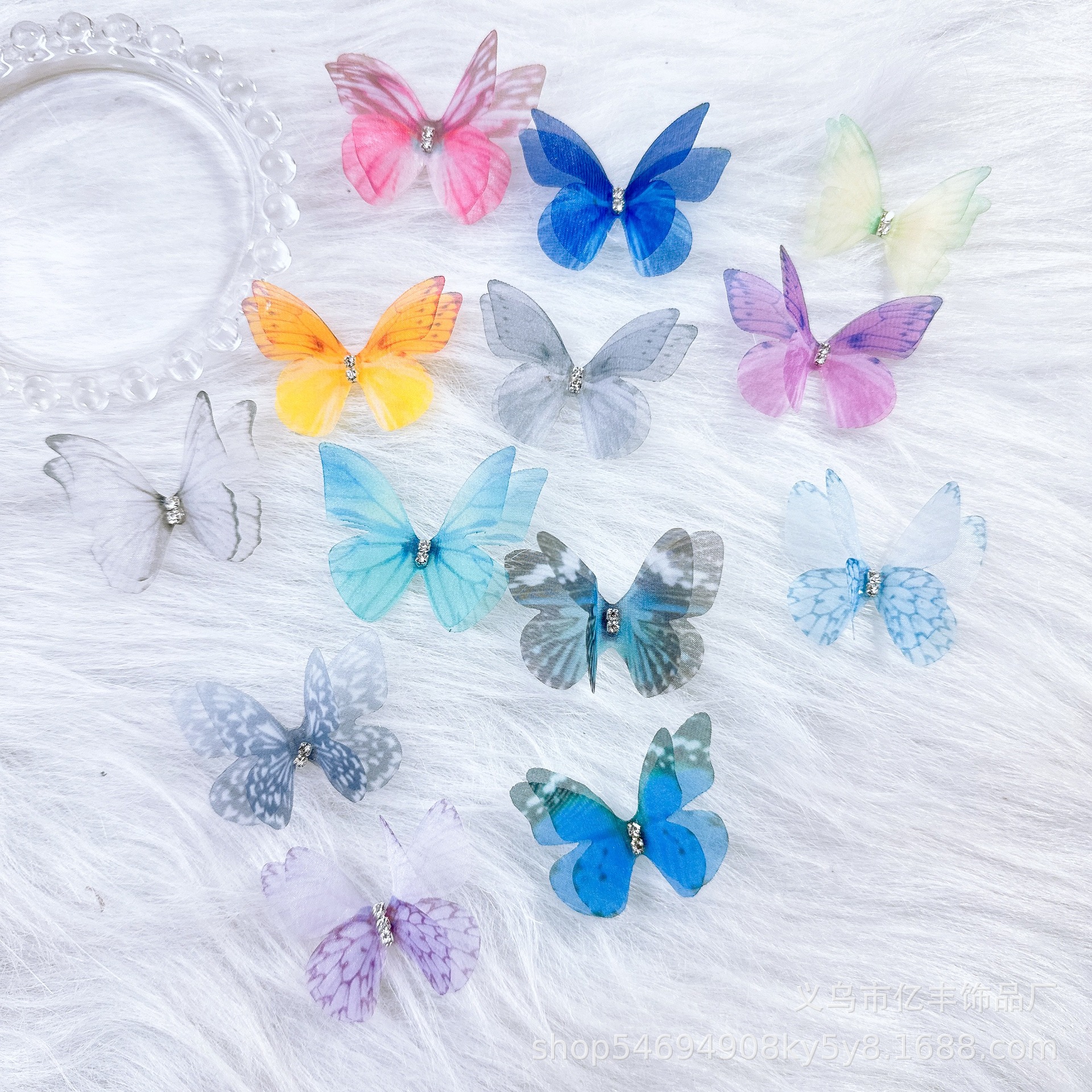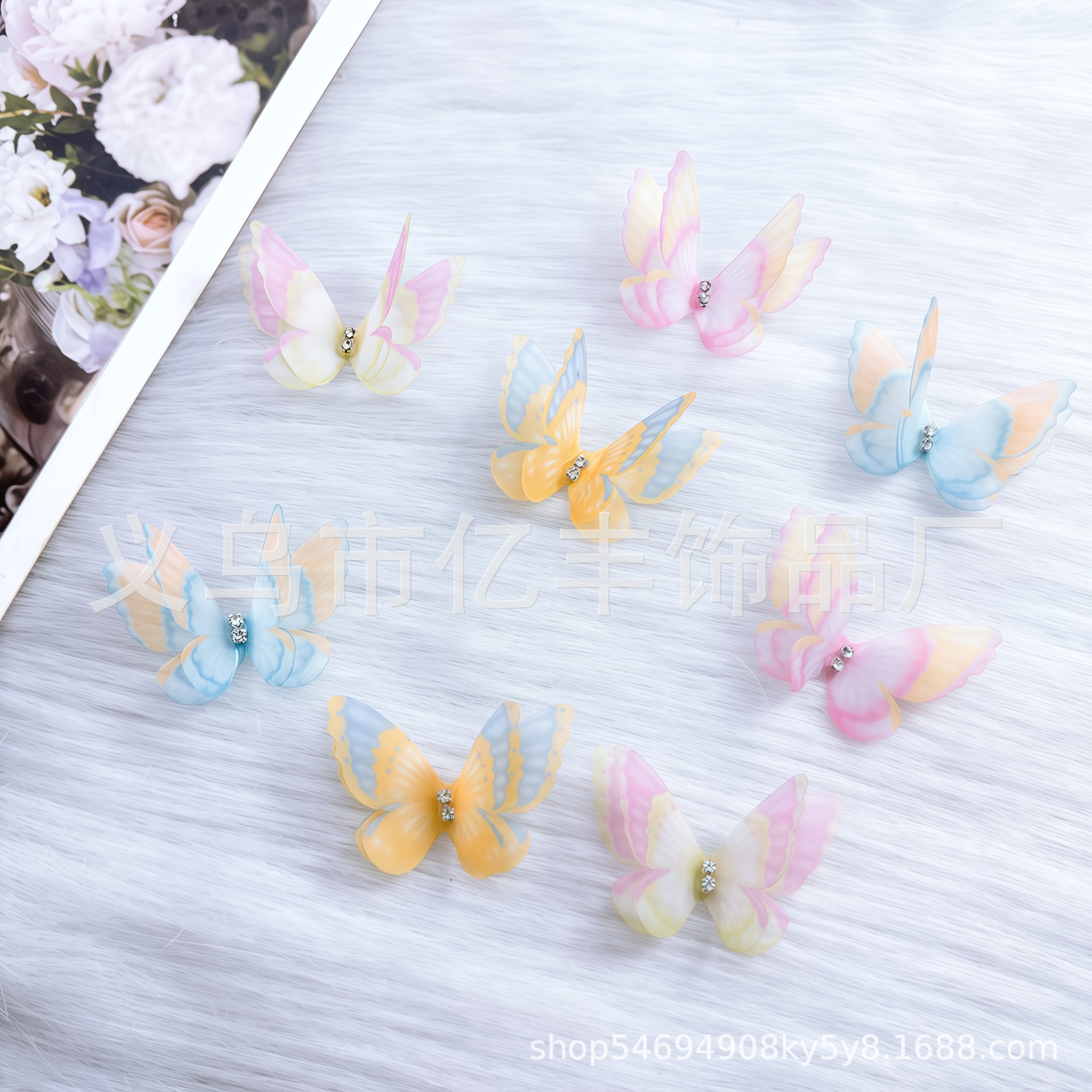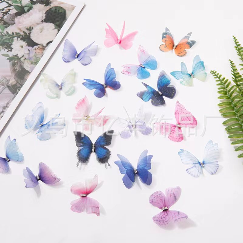 カラフルなシミュレーション蝶二重薄紗蝶服装手作りdiyアクセサリー蝶ヘアピン部品シミュレーション蝶