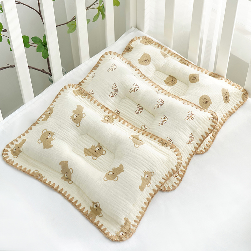 纱布花边婴儿枕头幼儿园宝宝午休四季款云片枕纯棉婴童