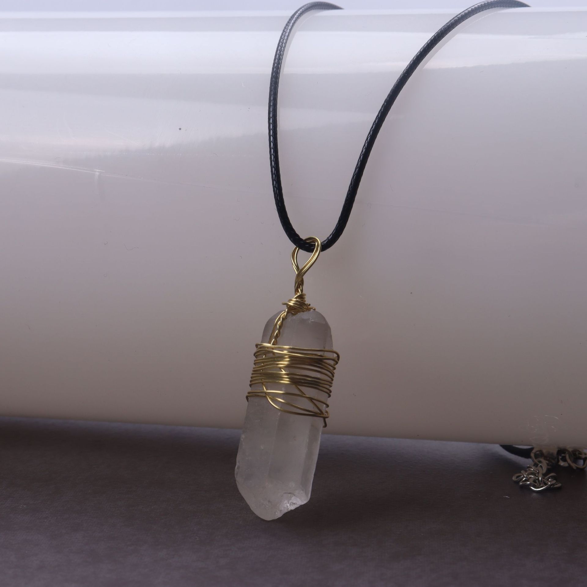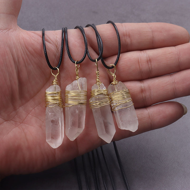 天然水晶六角柱石巻き線ペンダント線ネックレス不規則玉長条アクセサリー卸売り