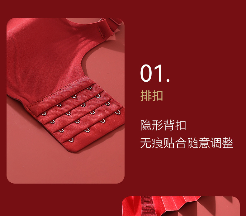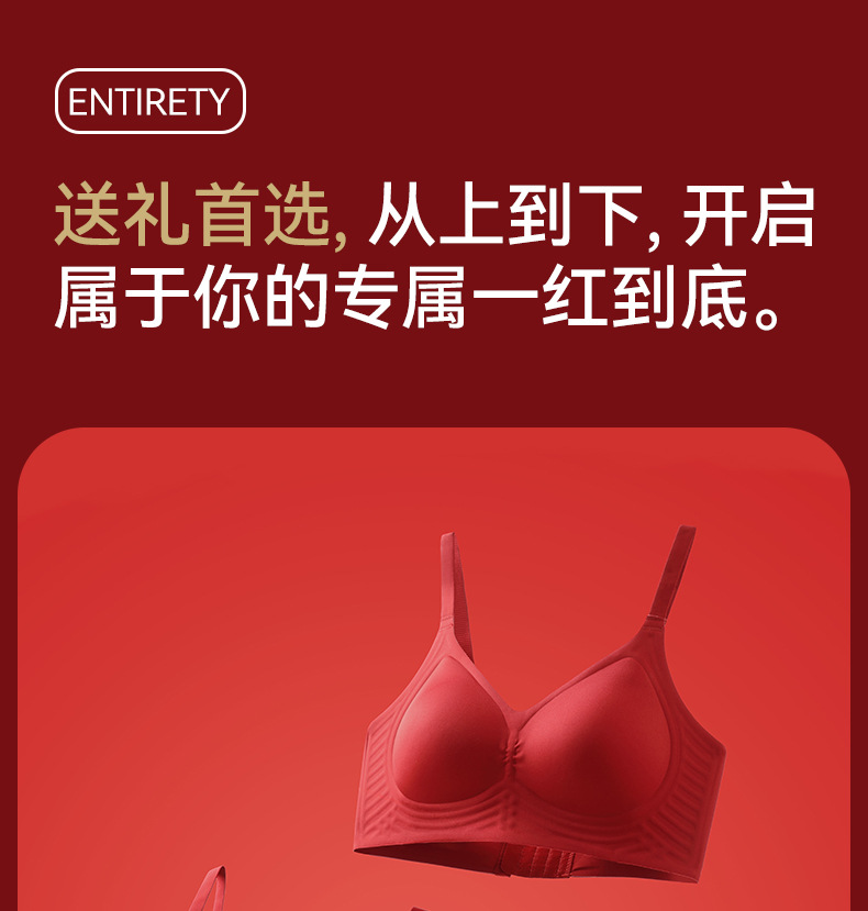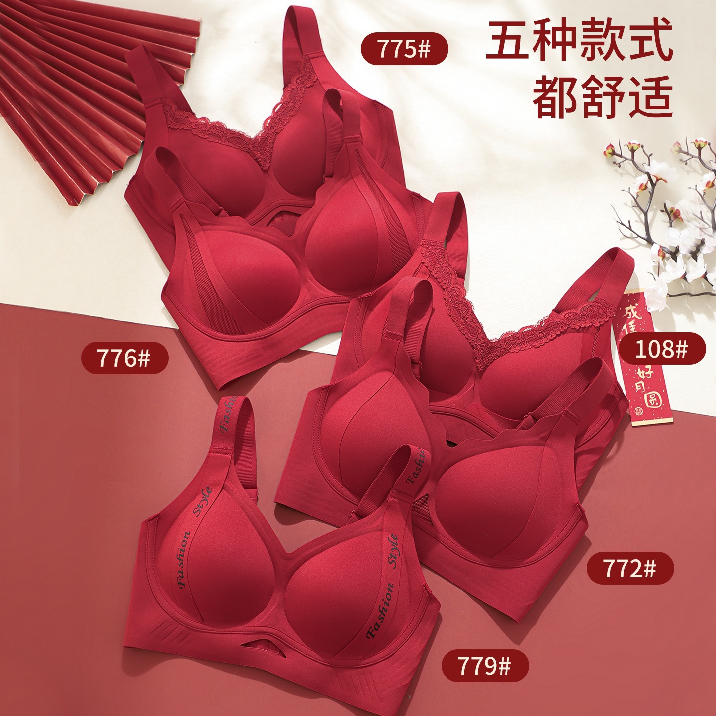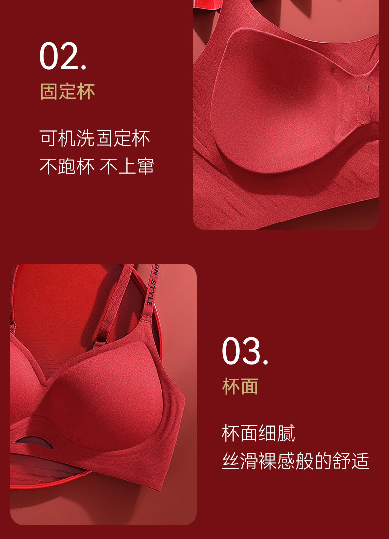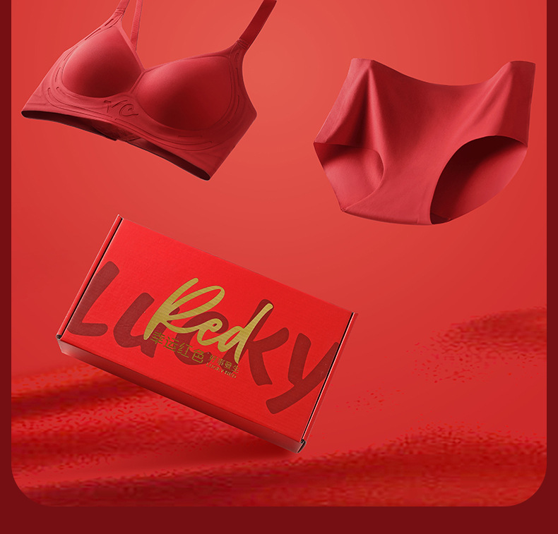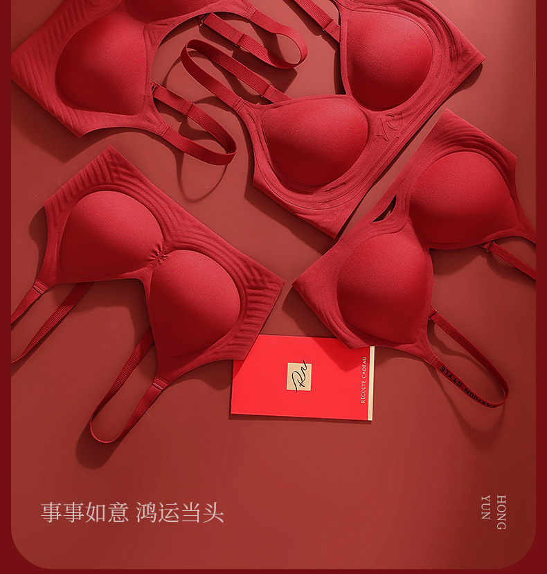 本命年内衣女大红聚拢无痕无钢圈美背文胸罩结婚新娘新年套装礼盒