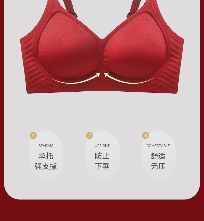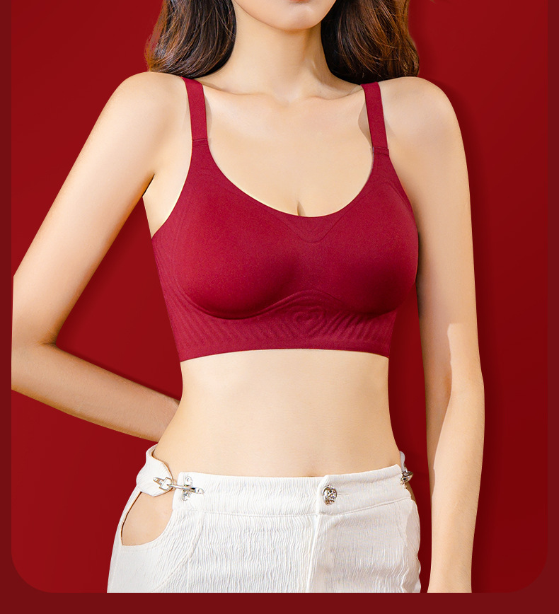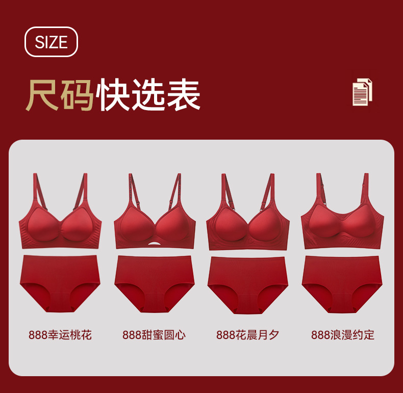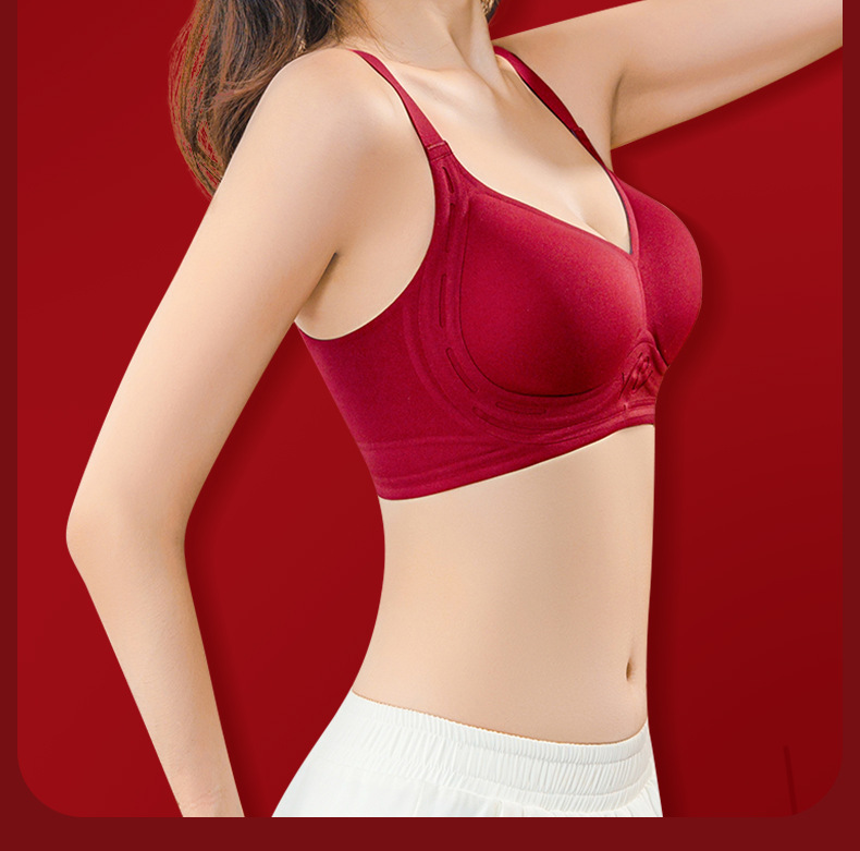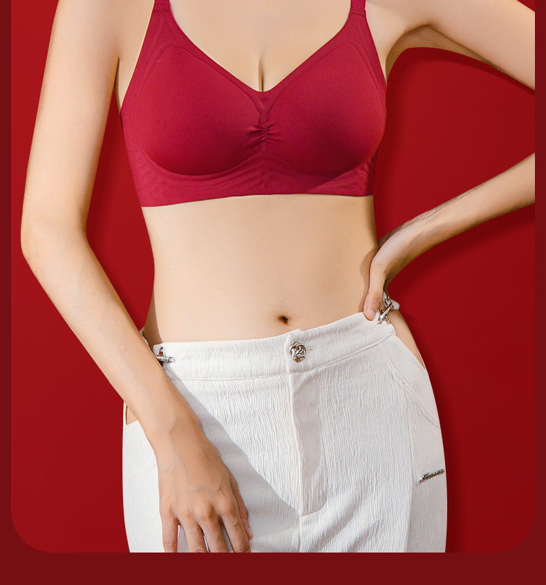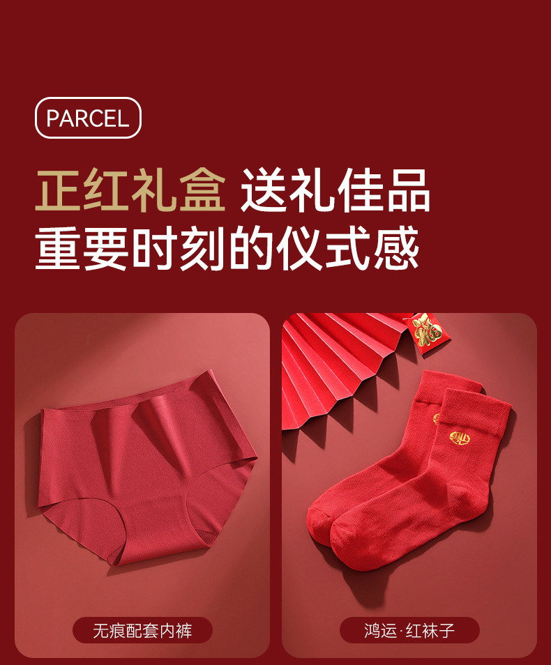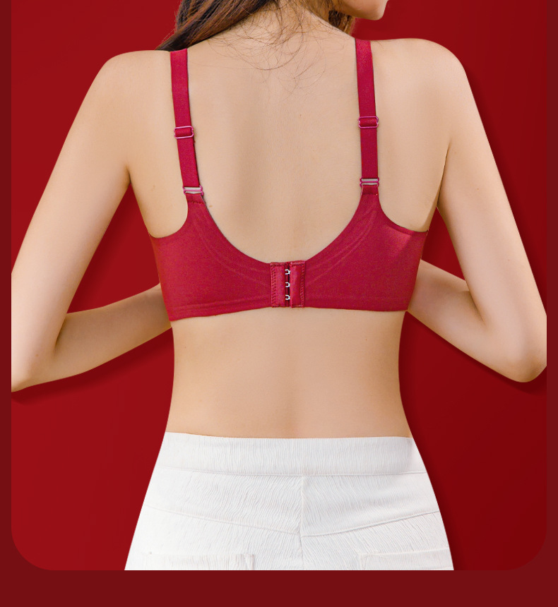 本命年内衣女大红聚拢无痕无钢圈美背文胸罩结婚新娘新年套装礼盒