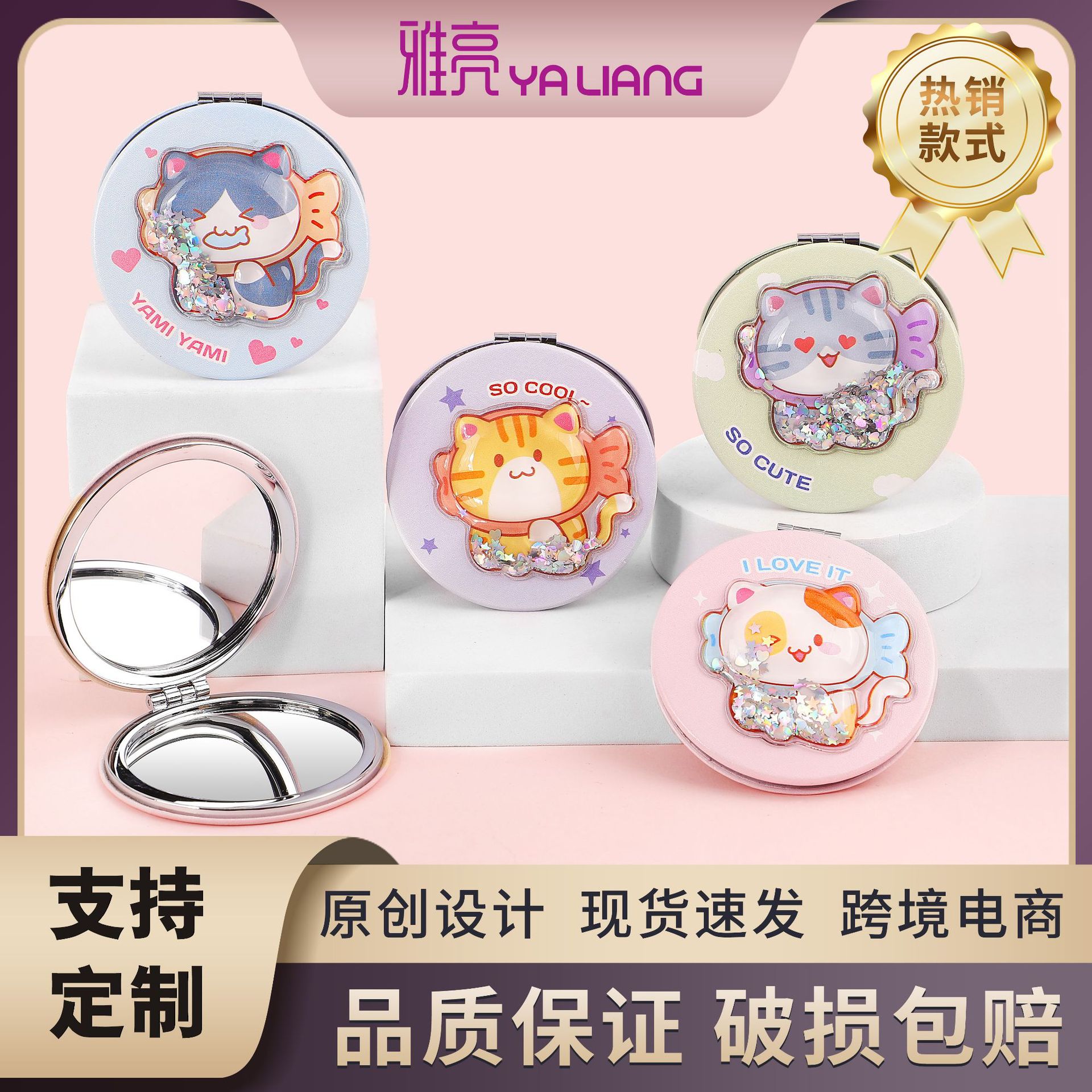 カスタムpu小鏡カスタムロゴ学生寮携帯少女ポケットかわいい携帯折り畳み化粧鏡