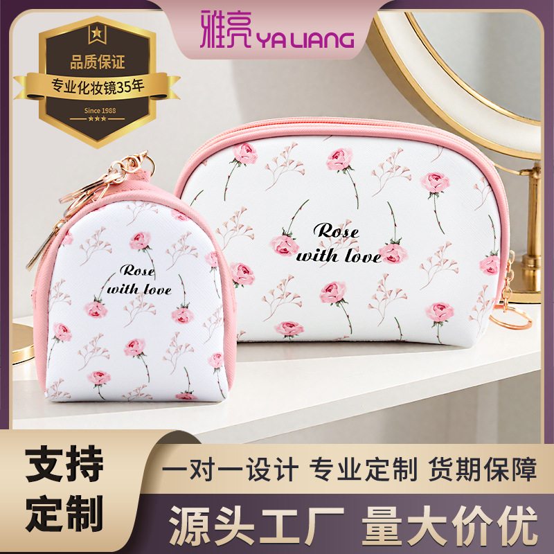 カスタマイズされた革製化粧ポーチは、PUプリント防水素材を使用しており、携帯用キーホルダー付きで機能的で実用的です。