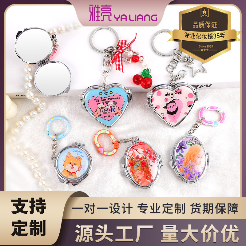 ミニ漫画メタルバッグチャームキーホルダー小さなミラー接着剤ミラーポータブルミラー写真でカスタマイズ
