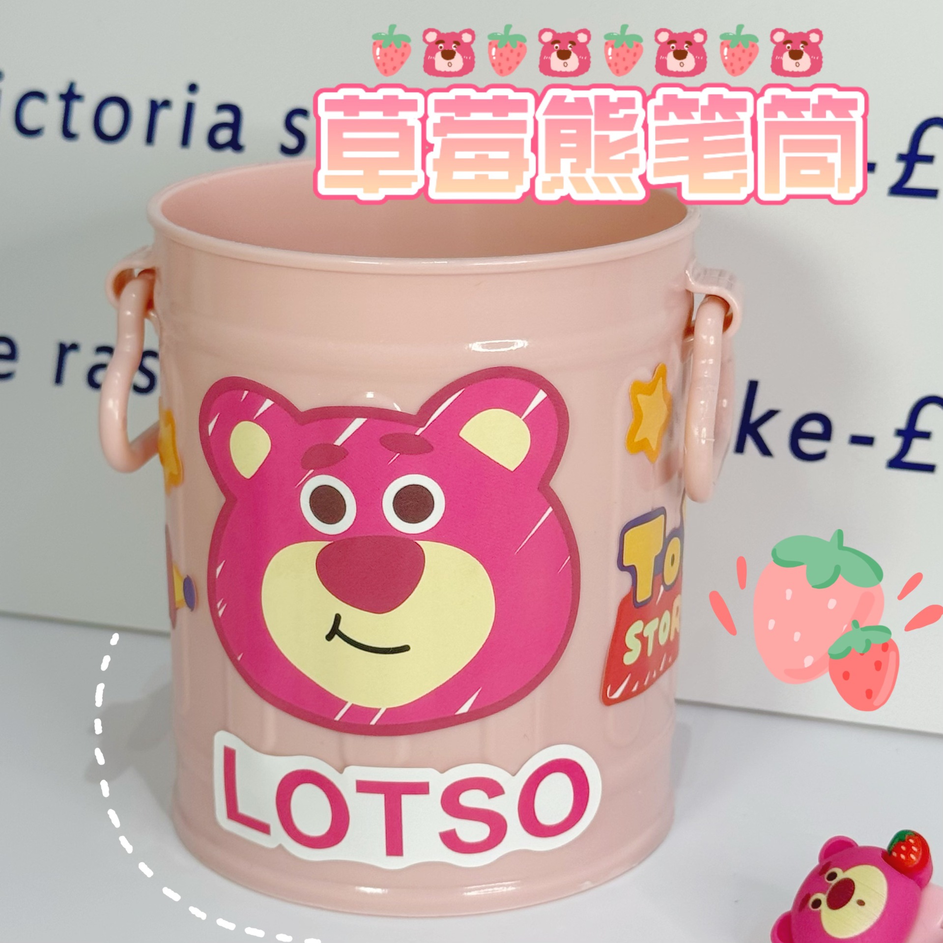 いちごクマ収納バケツ ペン立て 学生文房具収納 オフィス収納バケツ デスクトップ収納 可愛いスタイル