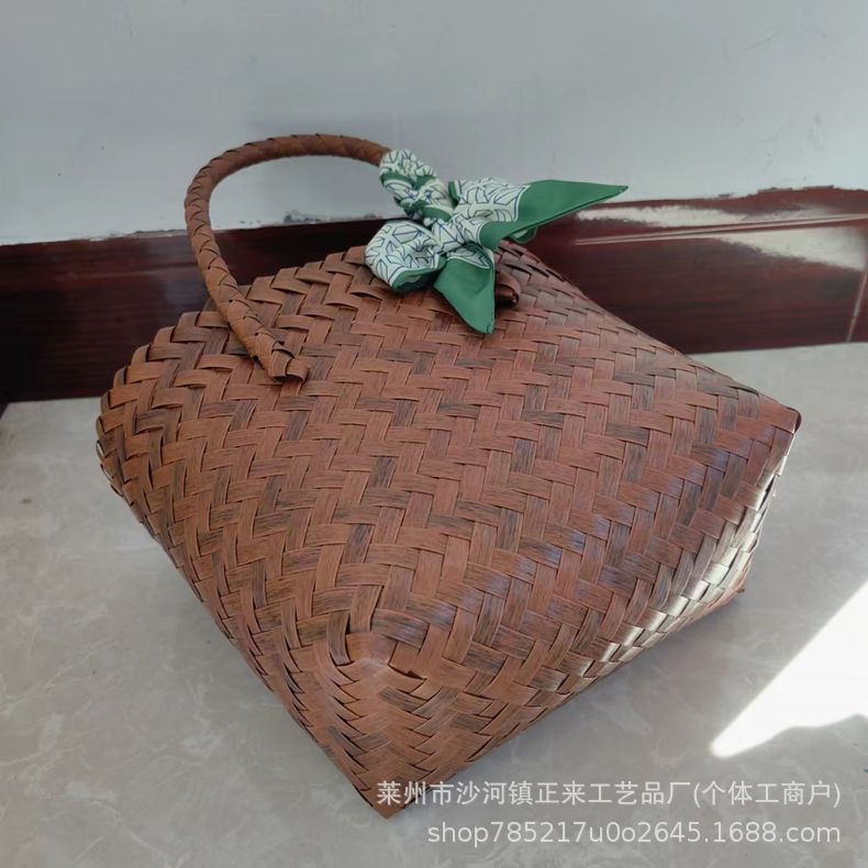 竹模様の籐風編みバッグ、祝祭、結婚式、新築祝い、編みかご、手提げ野菜かご、お土産、多用途バッグ