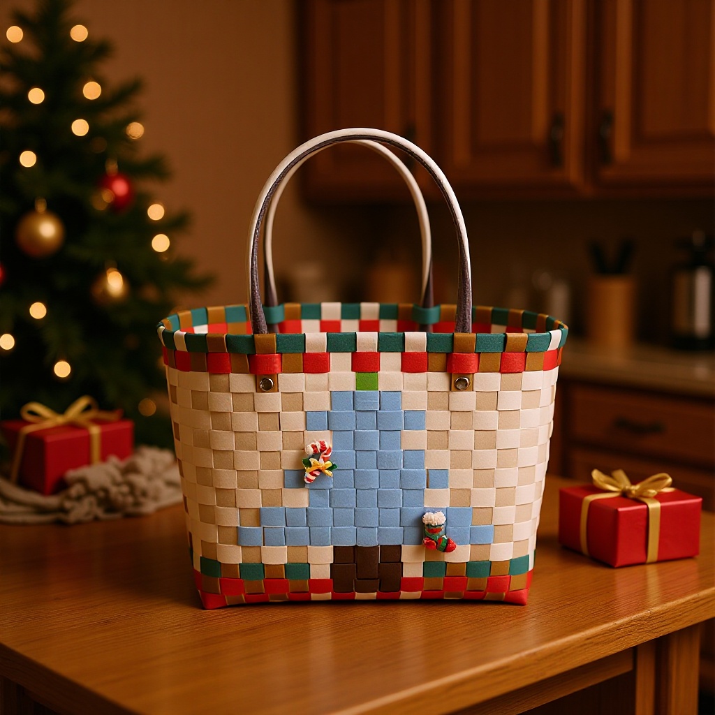 新型大容量手提菜籠バッグ、手編み格子柄バッグ、通勤ファッション、多用途、旅行用ハンドバッグ