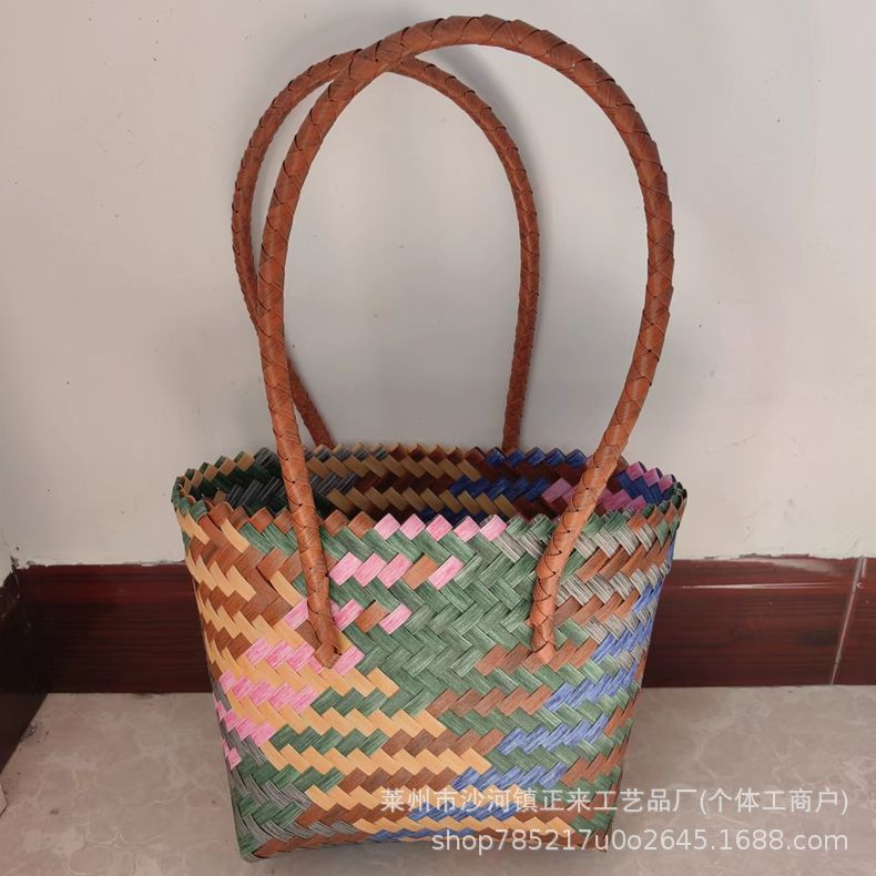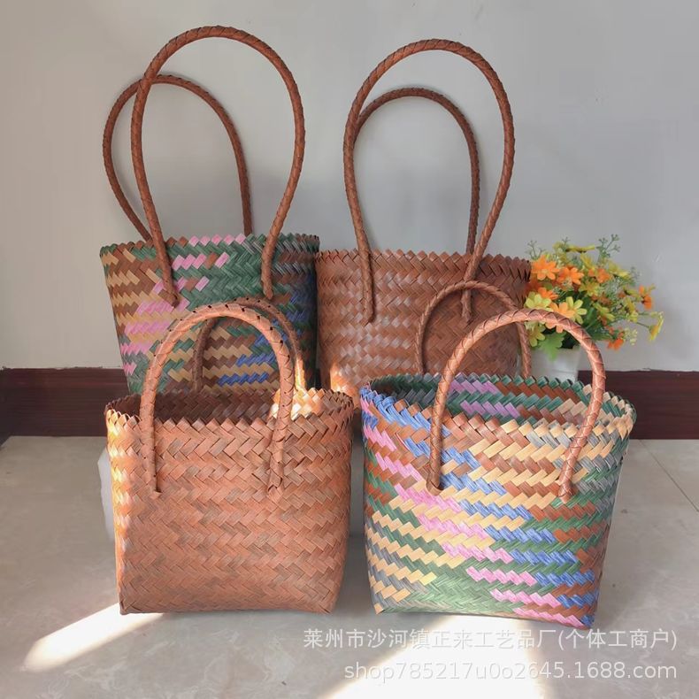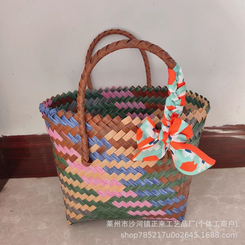卸売り六一児童ハンドバッグdiyピクニックバスケットビーチ防水手織りお土産カラー小方バッグ