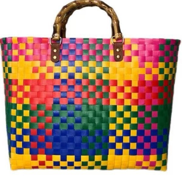 新型プラスチック製編み込み大容量バッグ、トートバッグ、手提げ野菜かご、レディースバッグ、おしゃれなギフト
