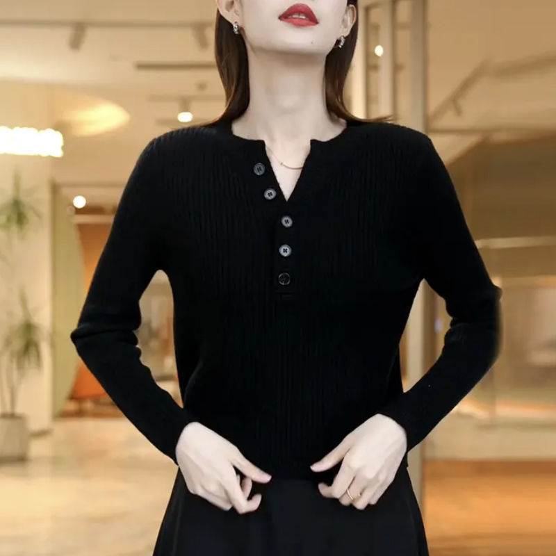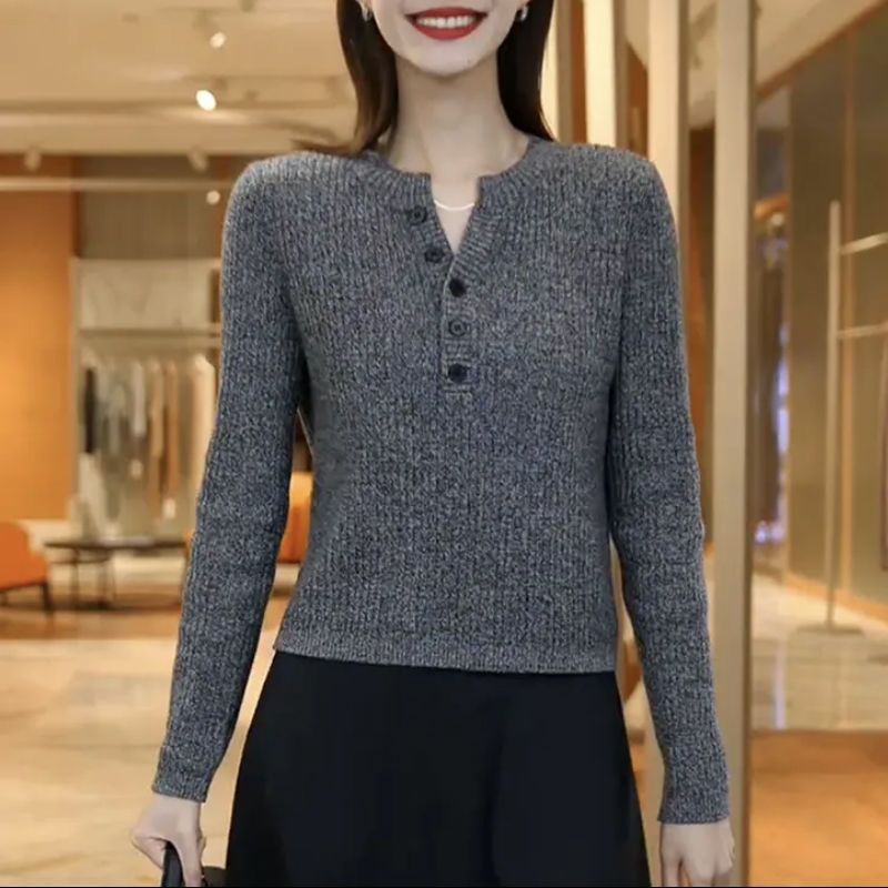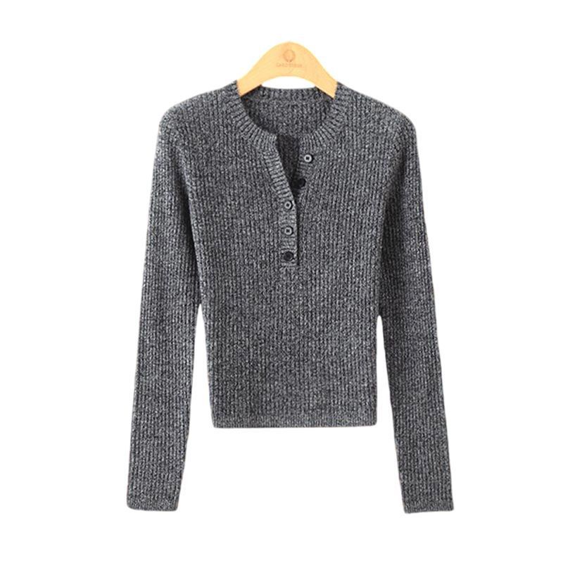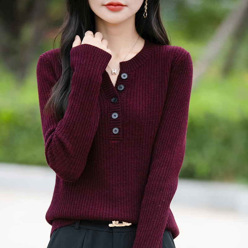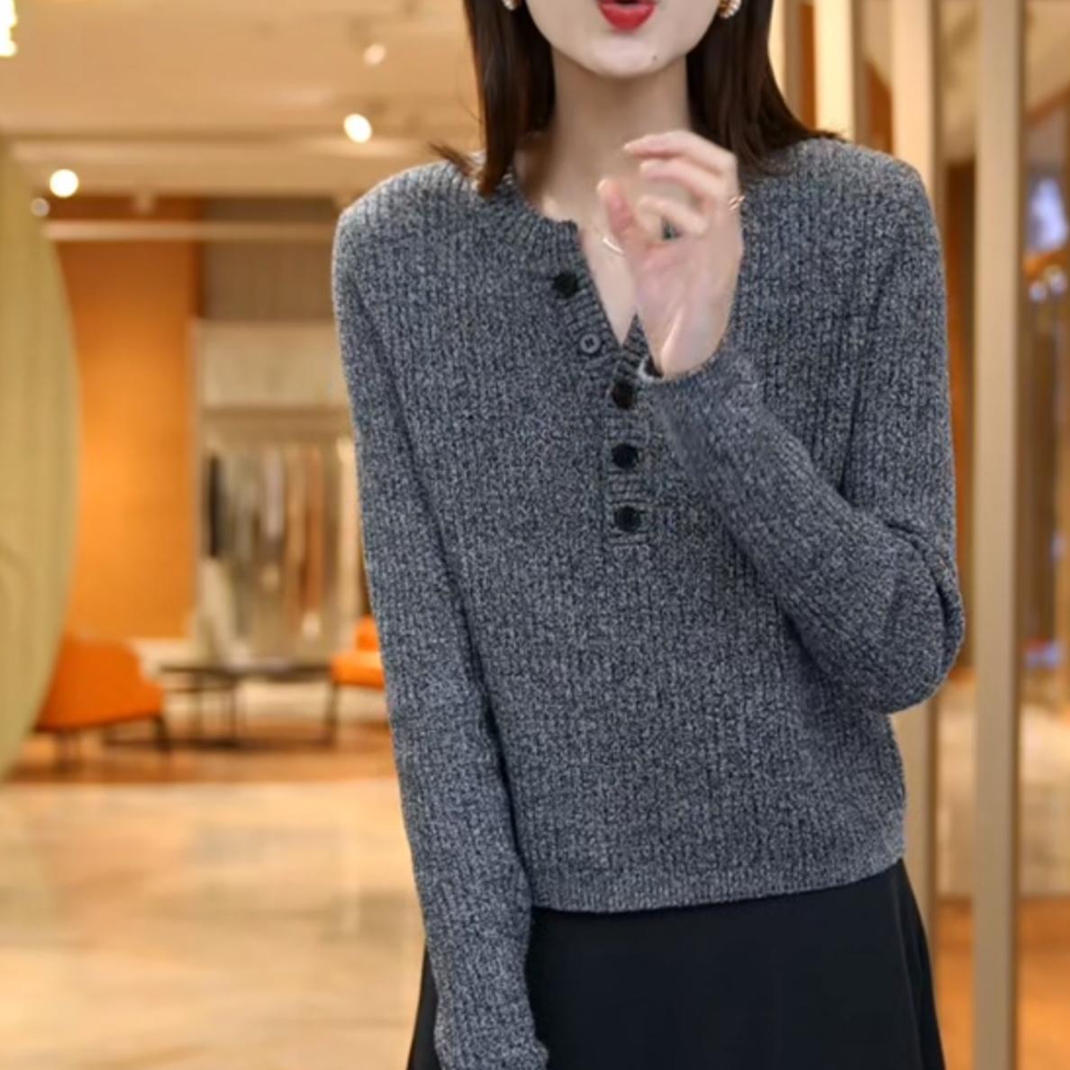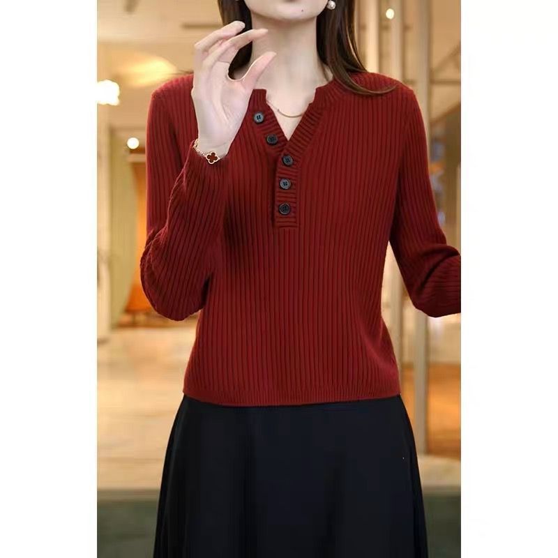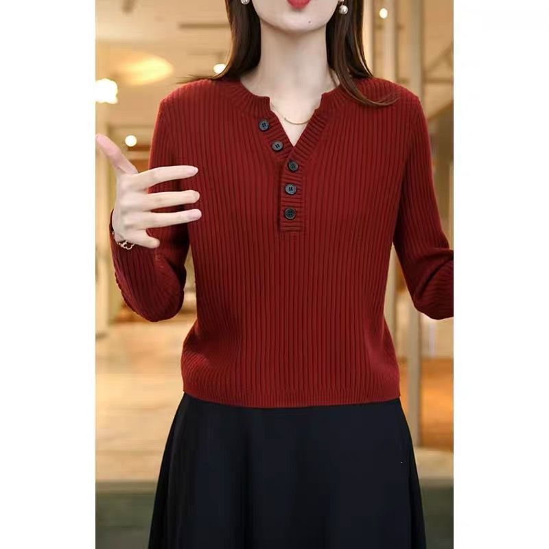 [メーカー直販] 春と秋の新作ラウンドネックボトリングシャツ、無地、多用途、ゆったり、痩身、年齢軽減レディースセーター