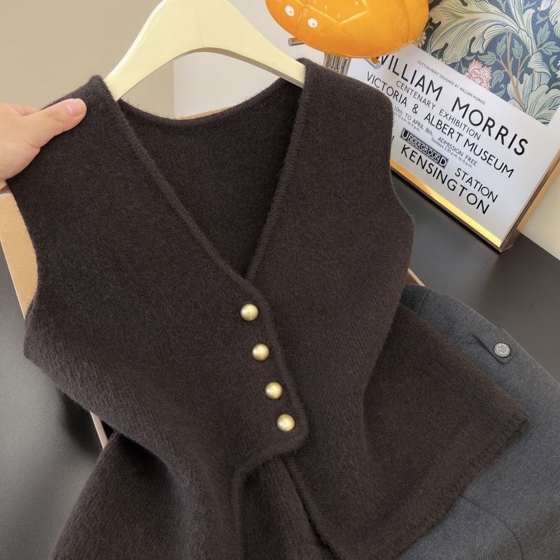 2025气质小香风时尚秋冬新款马甲背心V领长袖打底针织衫上衣女潮