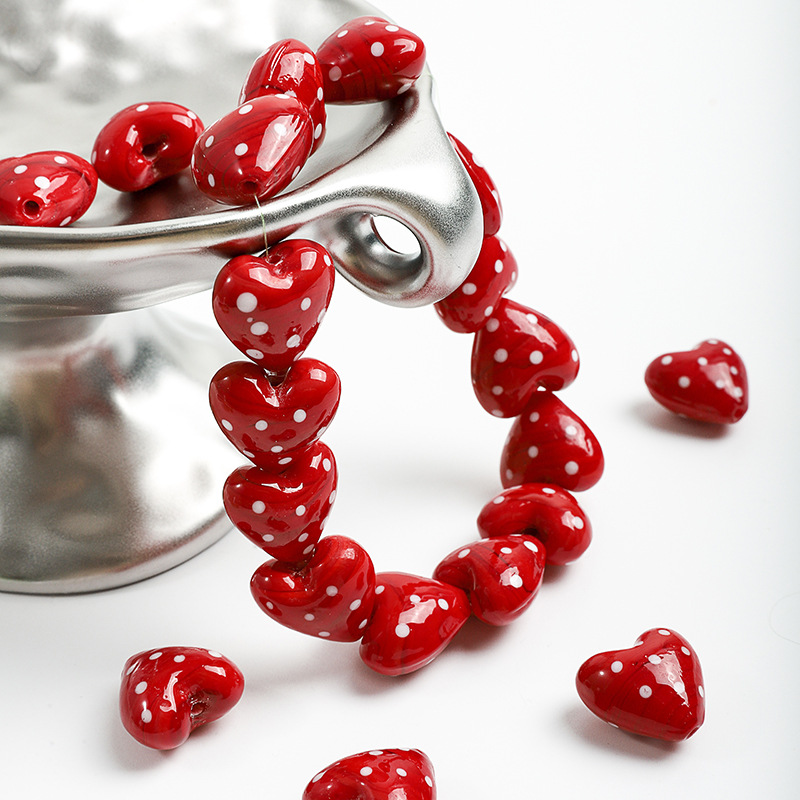 红色爱心波点玻璃珠琉璃珠子日式散珠串珠饰品配件手工diy材料